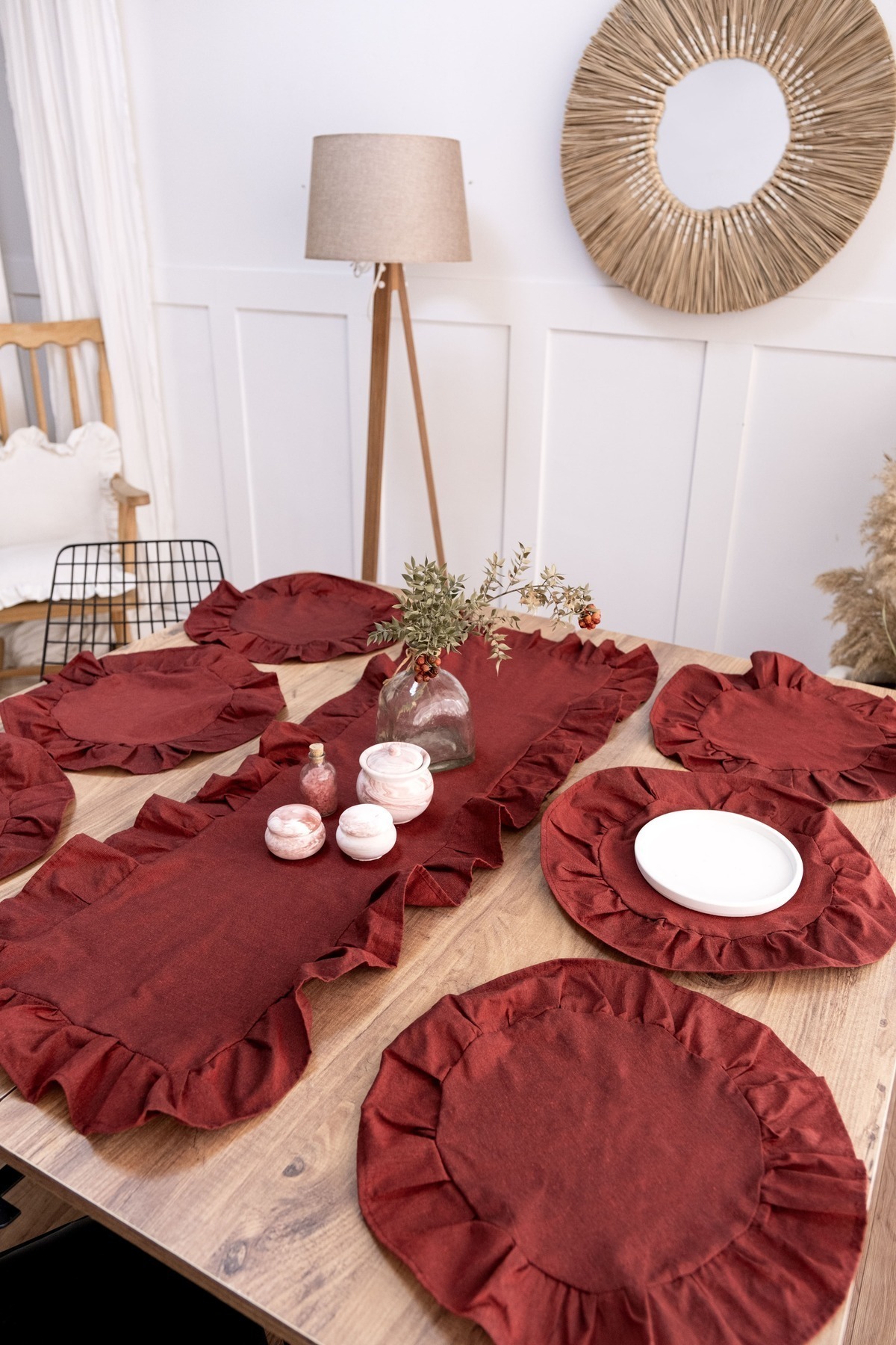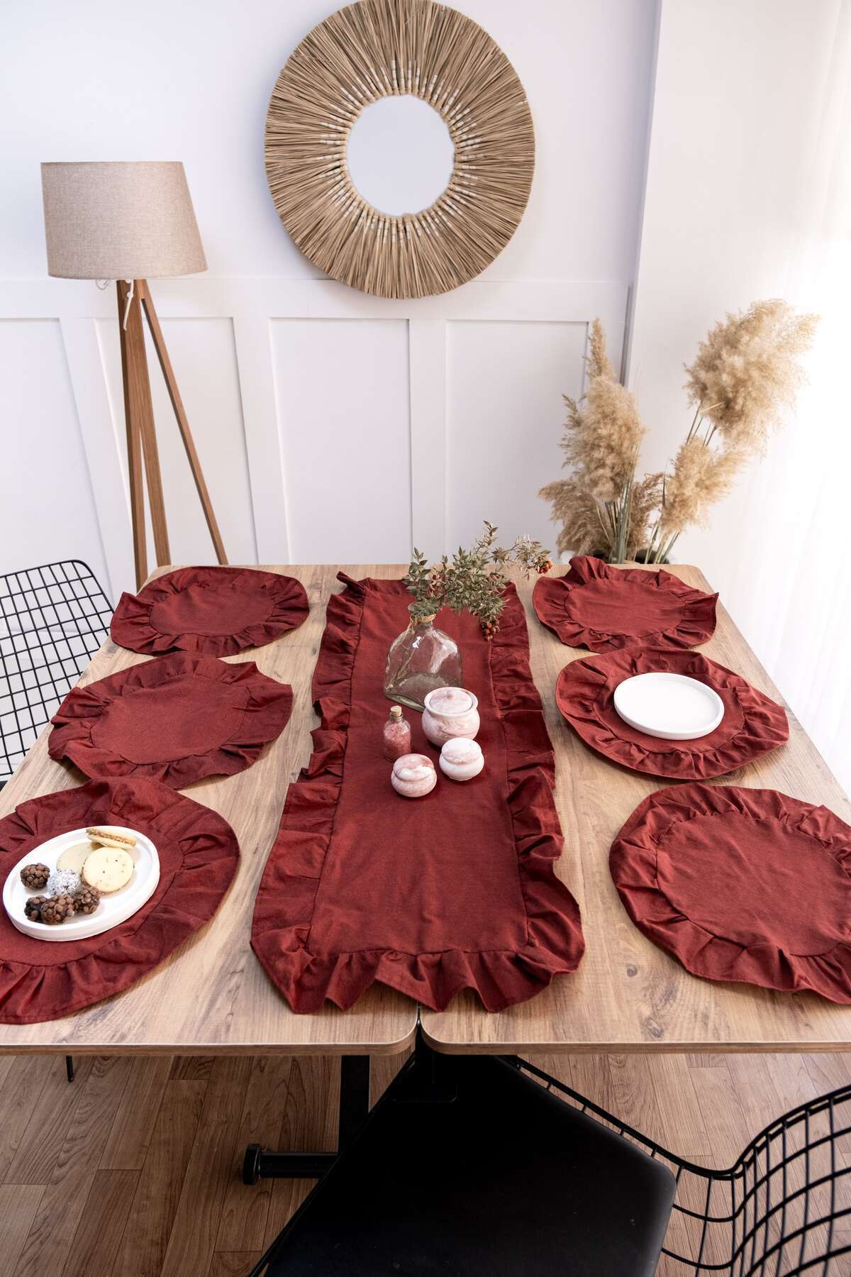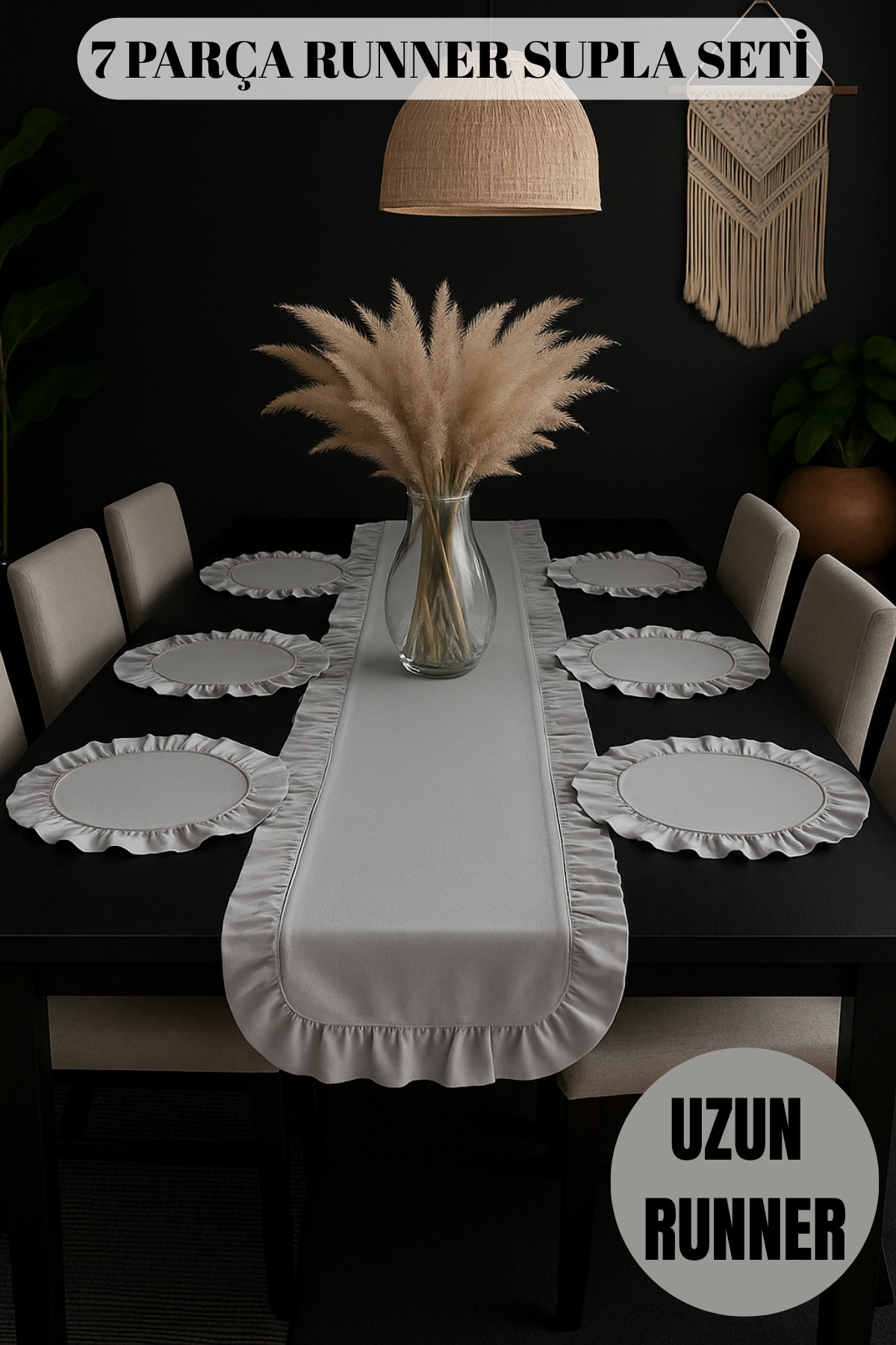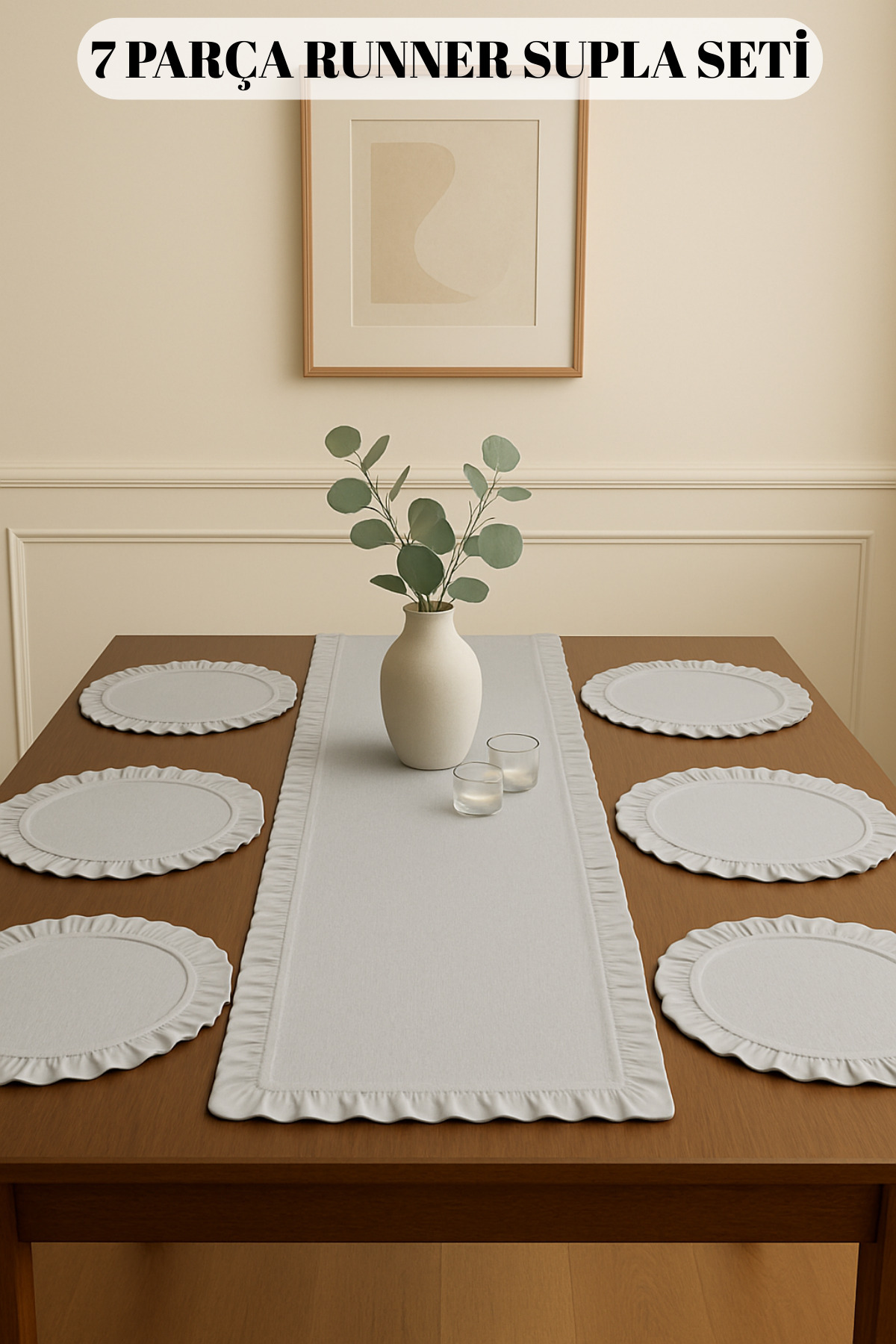 7 Parça Fırfırlı Sofra Sunum Seti 6 Adet Amerikan Servisi Supla + 1 Adet Fırfırlı Runner - 40x110 cm 7 Parça Fırfırlı Sofra Sunum Seti 6 Adet Amerikan Servisi Supla + 1 Adet Fırfırlı Runner - 40x110 cm 7parca-40x110-runner-supla-seti تک سایز
