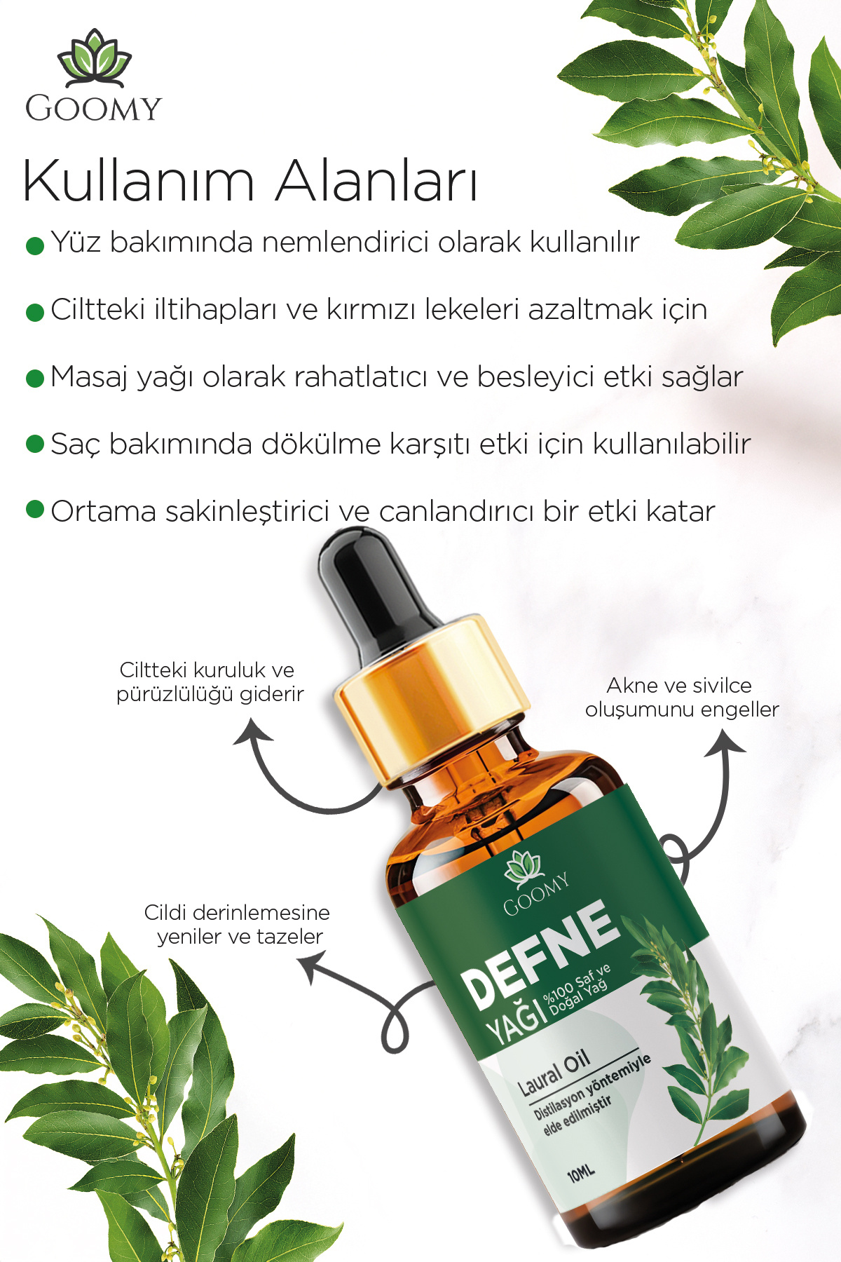 Defne Yaprağı Yağı Distilasyon %100 Doğal Bitkisel Uçucu Yağ Laurel Leaf Oil 10ml Defne Yaprağı Yağı Distilasyon %100 Doğal Bitkisel Uçucu Yağ Laurel Leaf Oil 10ml Goomy-DefneYapragi-10ml-Dogal تک سایز