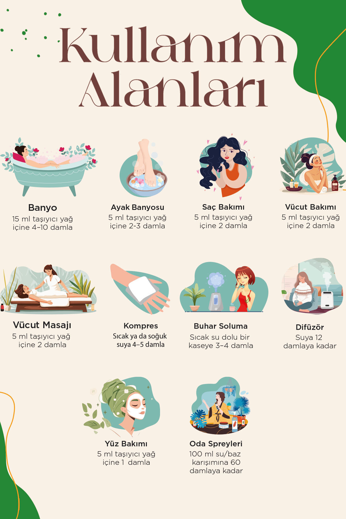 - Diğer Özellikler : Doğal uçucu ve sabit yağlar ile cilt, saç ve zihin sağlığınızı destekleyin. Cildinizi nemlendirin, rahatlatıcı etkisiyle stresinizi azaltın ve sağlıklı bir görünüm elde edin.