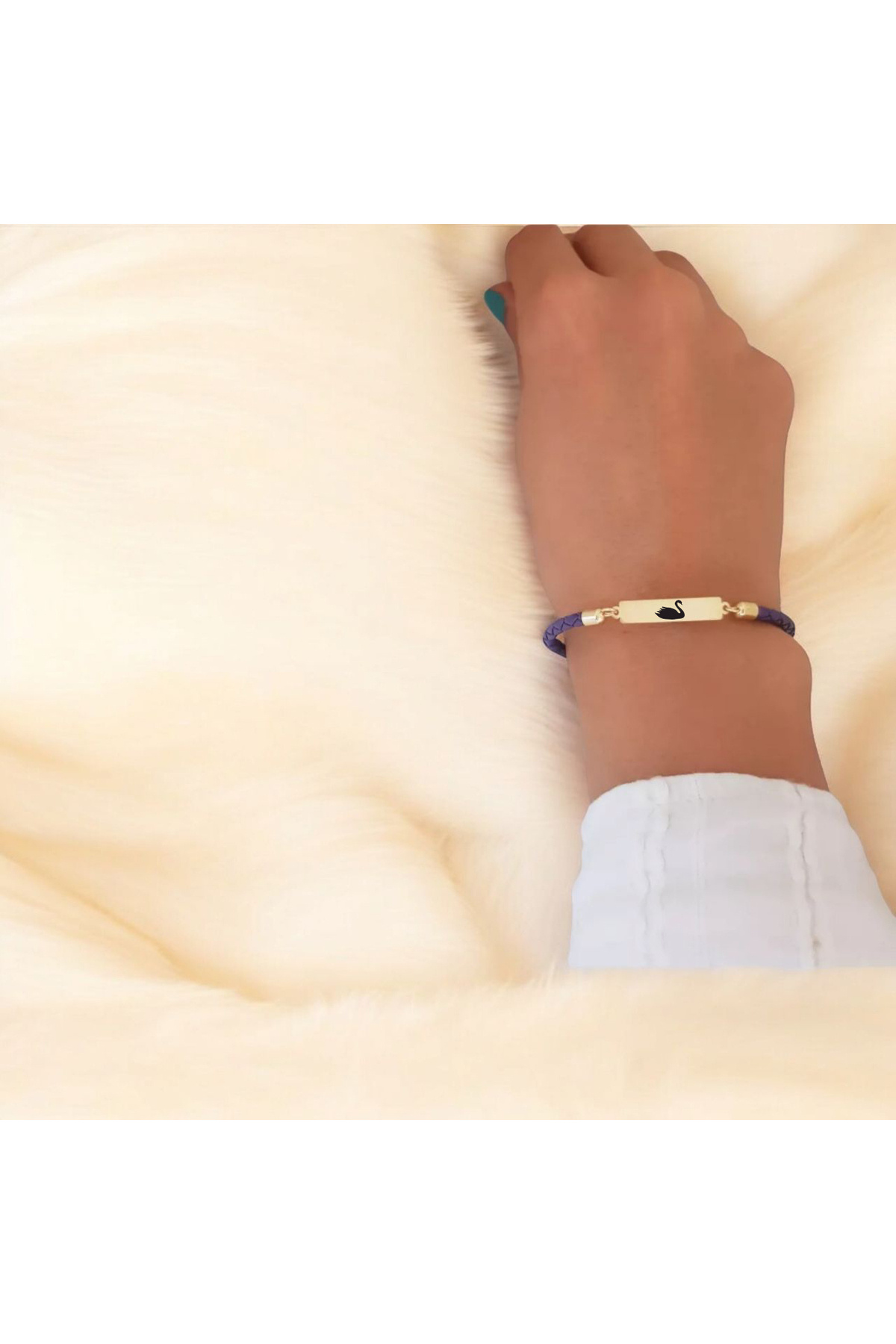 14 Ayar Altın Plakalı Bayanlara Özel Dikdörtgenli Ve Derili Kuğu Detaylı Bileklik-412sembol-mor 14 Ayar Altın Plakalı Bayanlara Özel Dikdörtgenli Ve Derili Kuğu Detaylı Bileklik-412sembol-mor 412-dachamosta-momot-MO3 22 cm