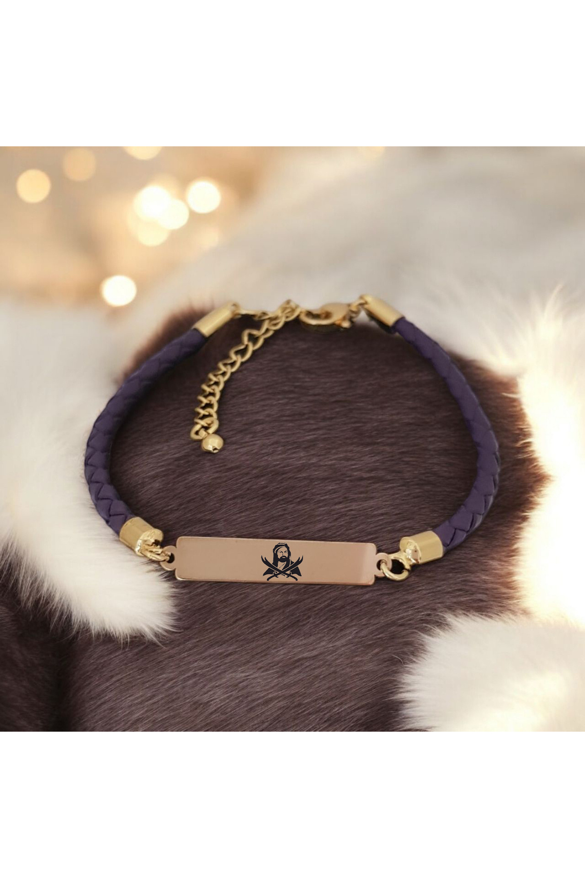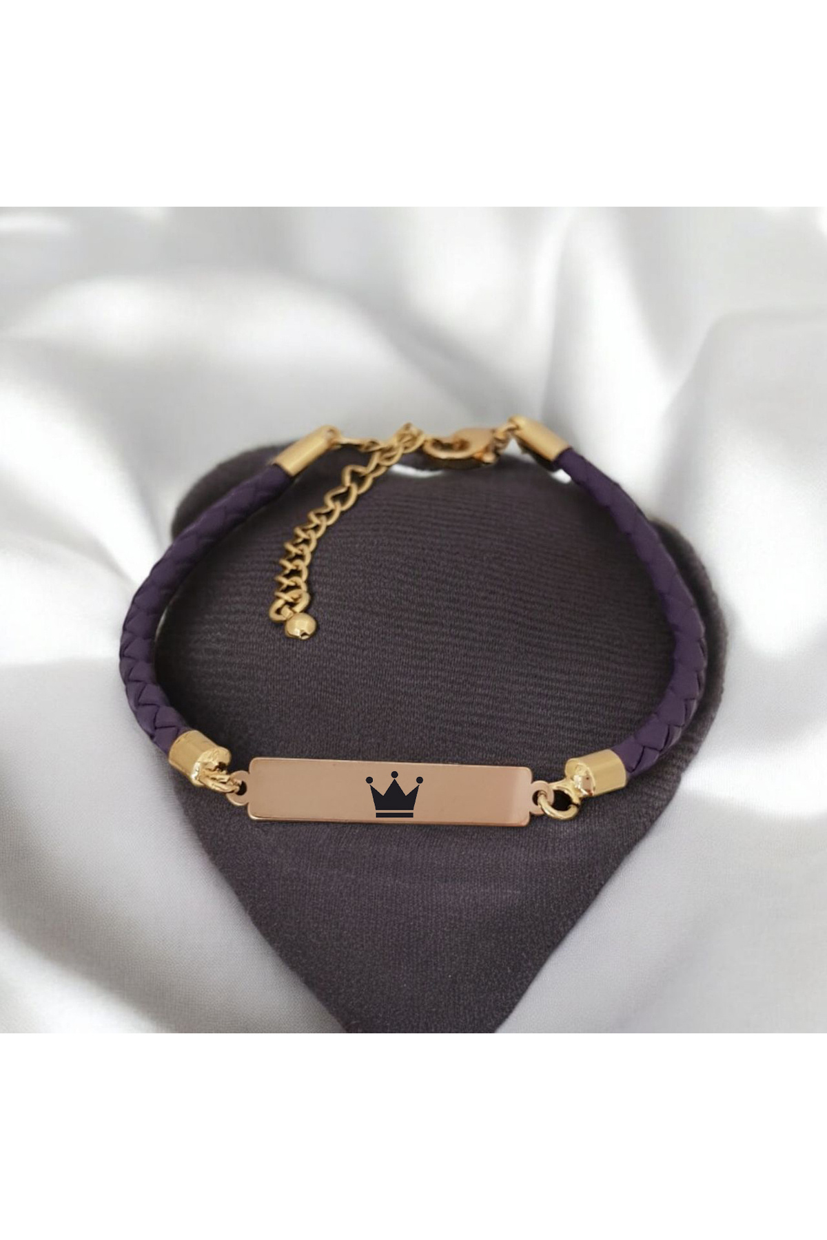 14 Ayar Plakalı Altın Bayanlara Özel Dikdörtgenli Ve Derili Kraliçe Desenli Bileklik-412sembol-mor 14 Ayar Plakalı Altın Bayanlara Özel Dikdörtgenli Ve Derili Kraliçe Desenli Bileklik-412sembol-mor 412-dachamosta-momot-MO3 22 cm