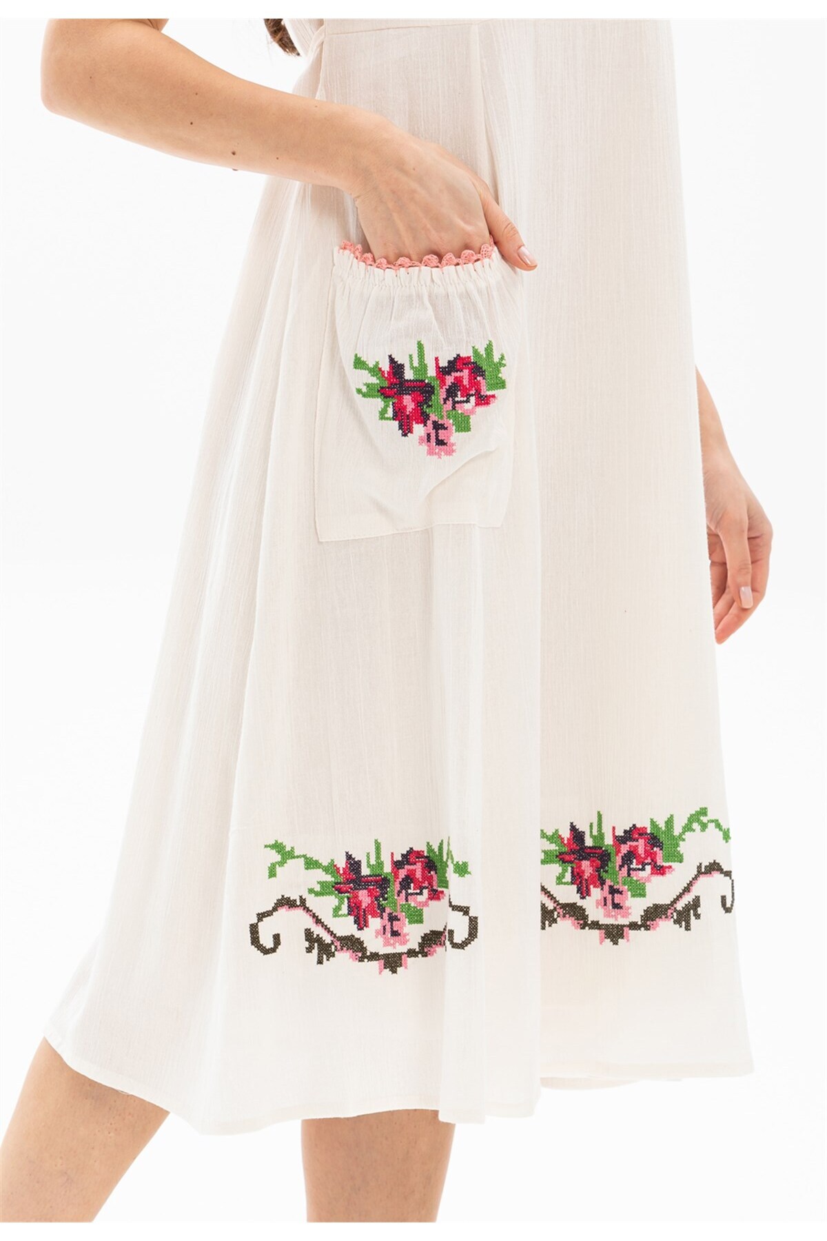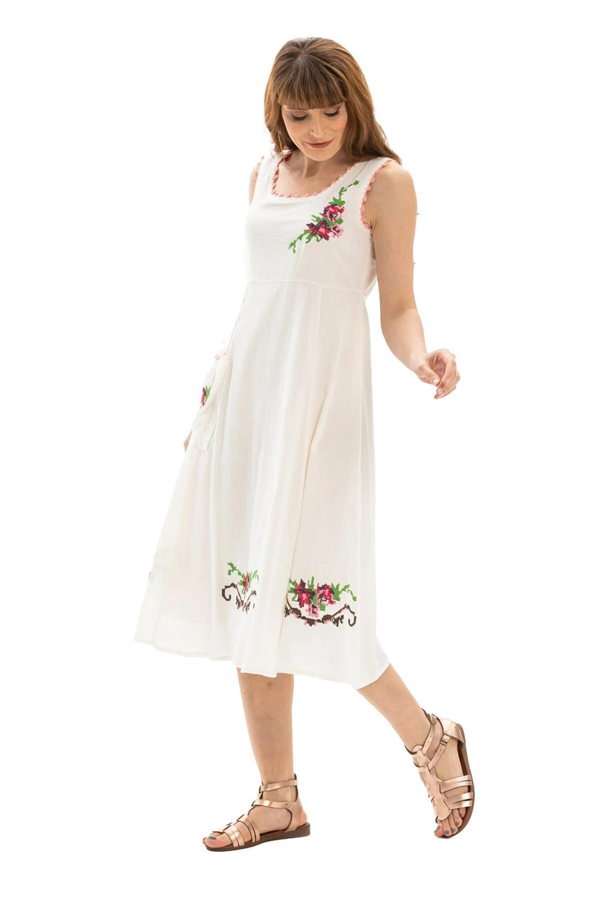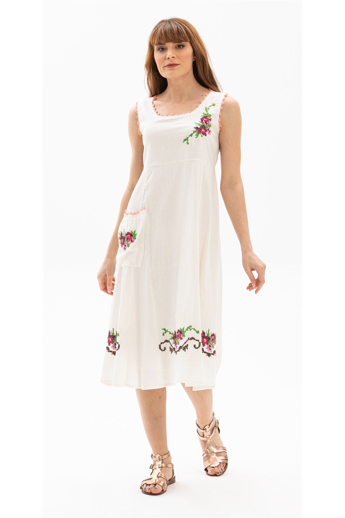Kolsuz Şile Bezi Burçak Midi Boy Yazlık Elbise Krem Krm Kolsuz Şile Bezi Burçak Midi Boy Yazlık Elbise Krem Krm 723.08 XL