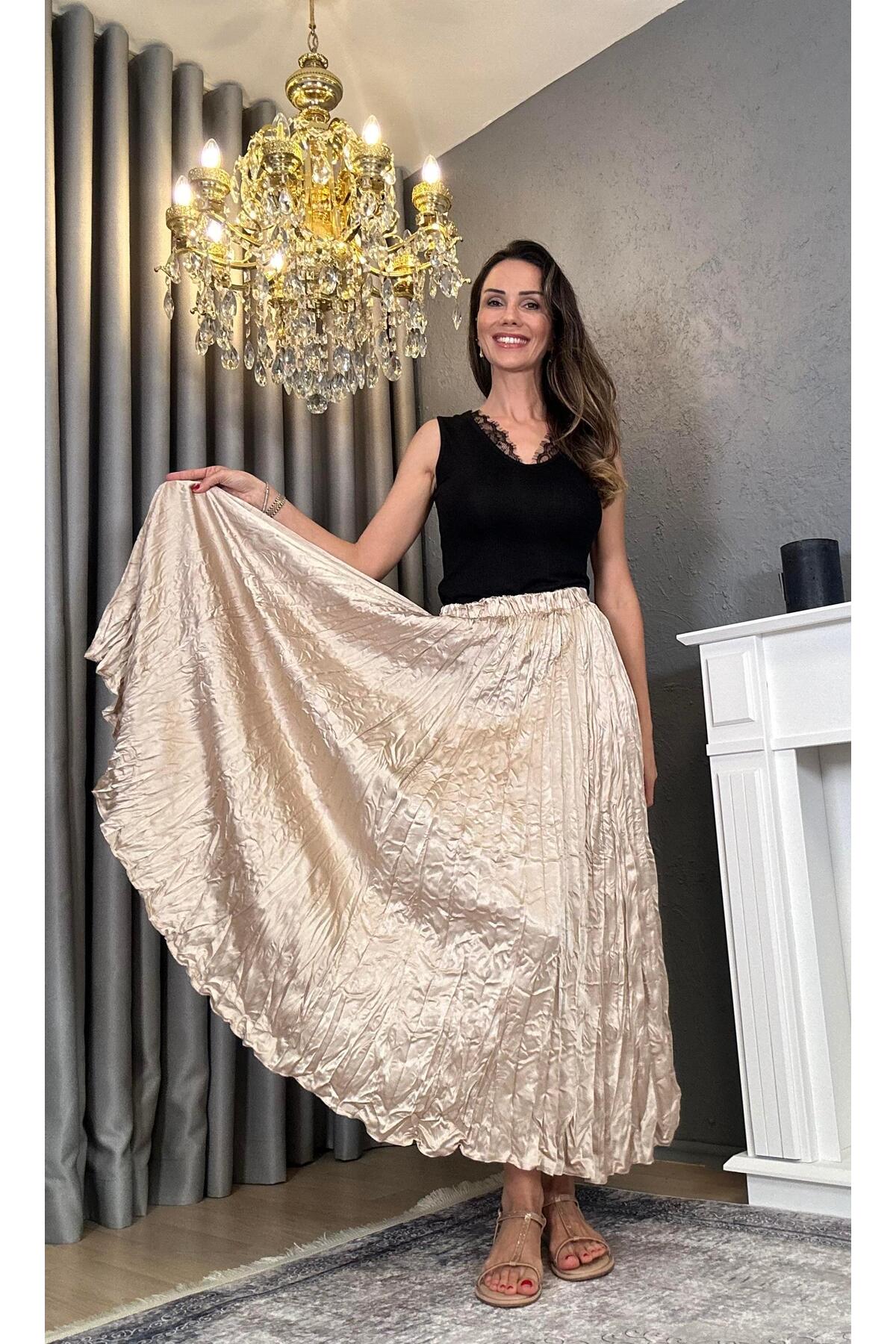 Beli Lastikli Kırışık Görünümlü Kraş Etek Beli Lastikli Kırışık Görünümlü Kraş Etek Sozkesen-gobjgı Standart