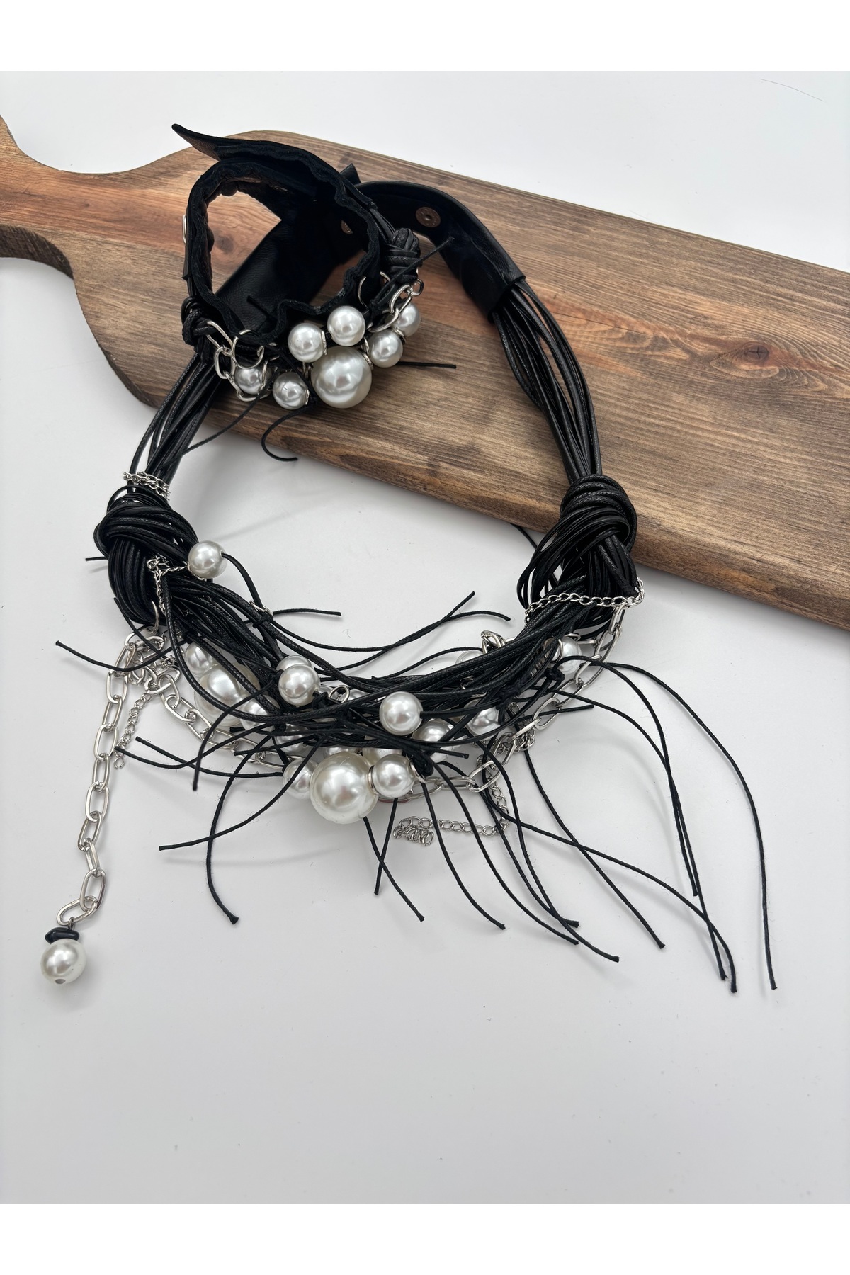 Tasrım incili deri kolye Tasrım incili deri kolye Agg2025 İ2 تک سایز