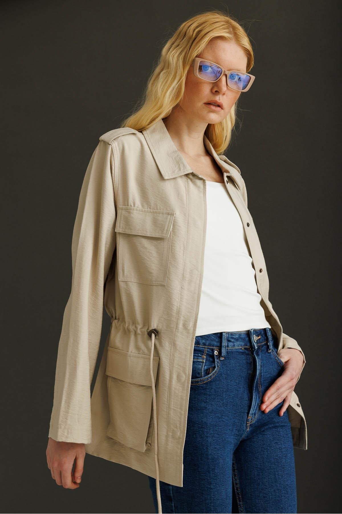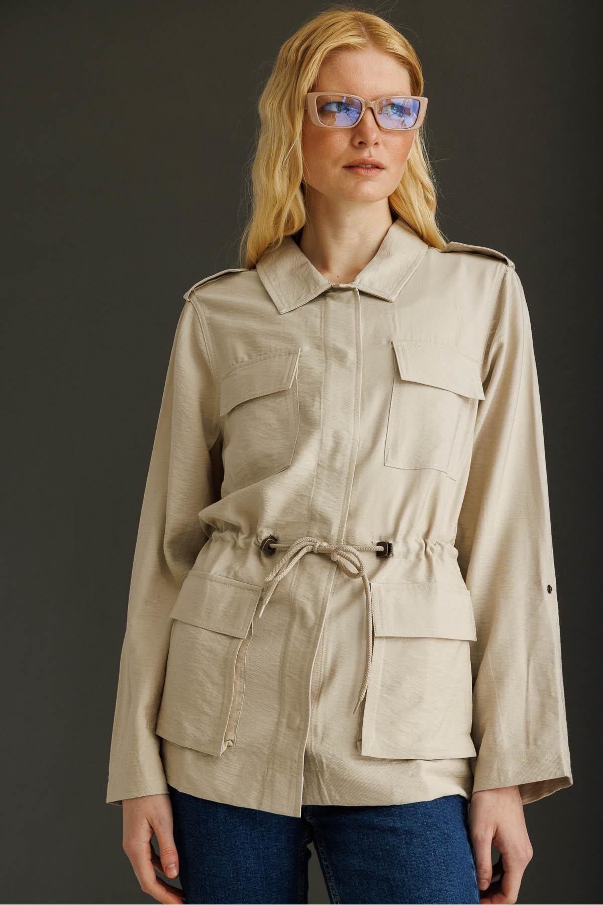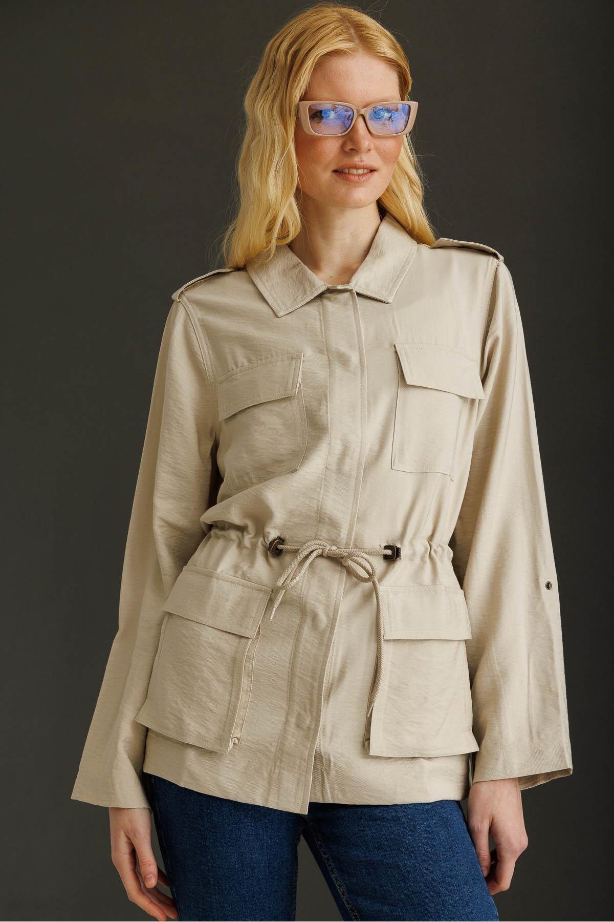 Kadın Safari Model Keten Ceket Taş Kadın Safari Model Keten Ceket Taş KMY24079 XL
