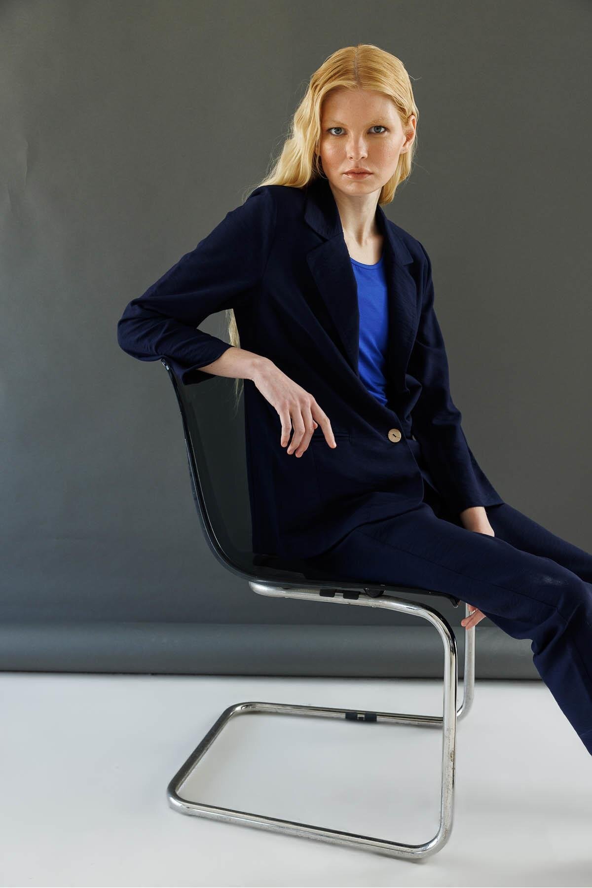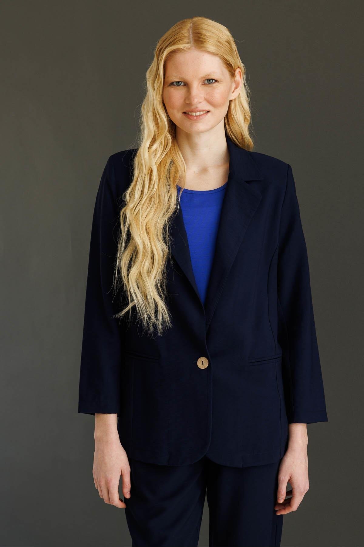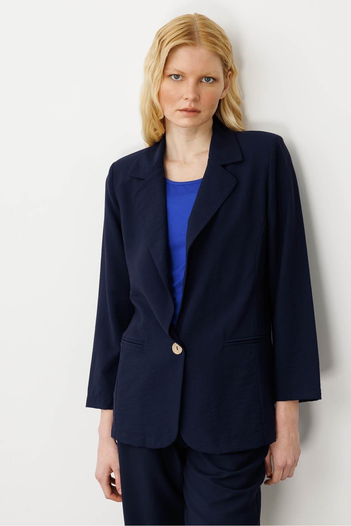 Kadın Tek Düğmeli Keten Ceket Lacivert Kadın Tek Düğmeli Keten Ceket Lacivert 25878 XL