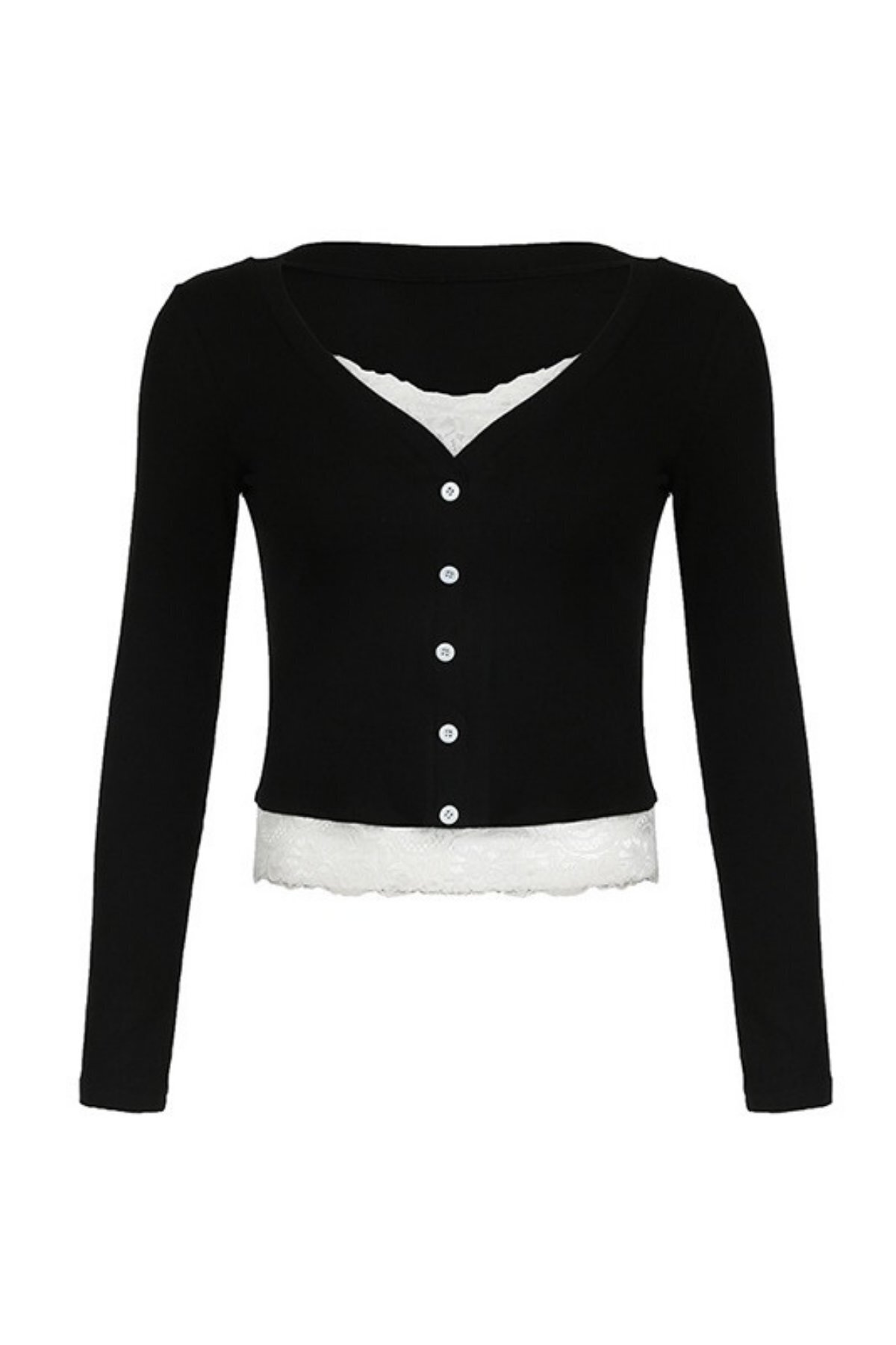 Siyah Düğmeli Dantel Yaka Ve Bel Detaylı Uzun Kollu Crop Siyah Düğmeli Dantel Yaka Ve Bel Detaylı Uzun Kollu Crop siyahdüğmelidntyk L