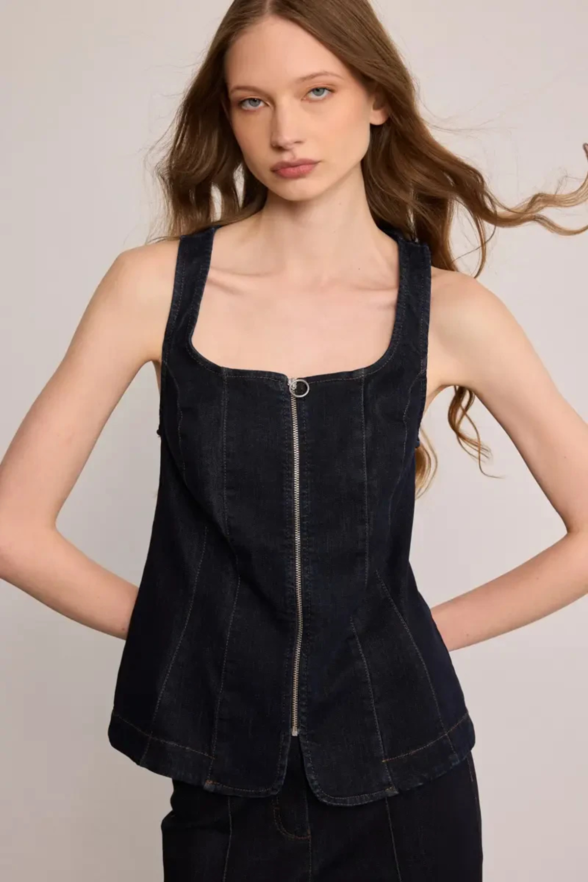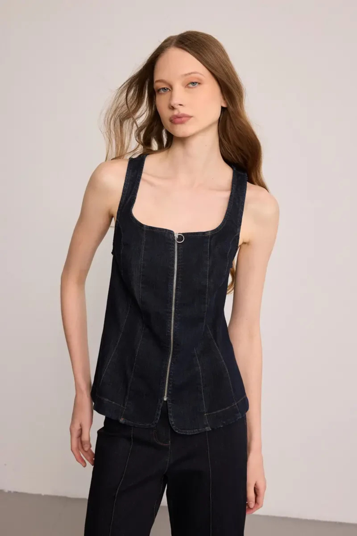 Denım Korse Yelek - Mavi Denım Korse Yelek - Mavi 25YG002633 L