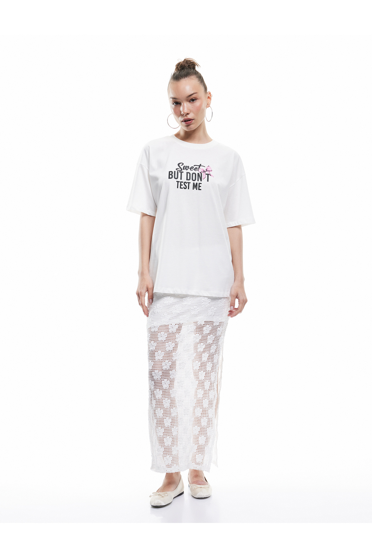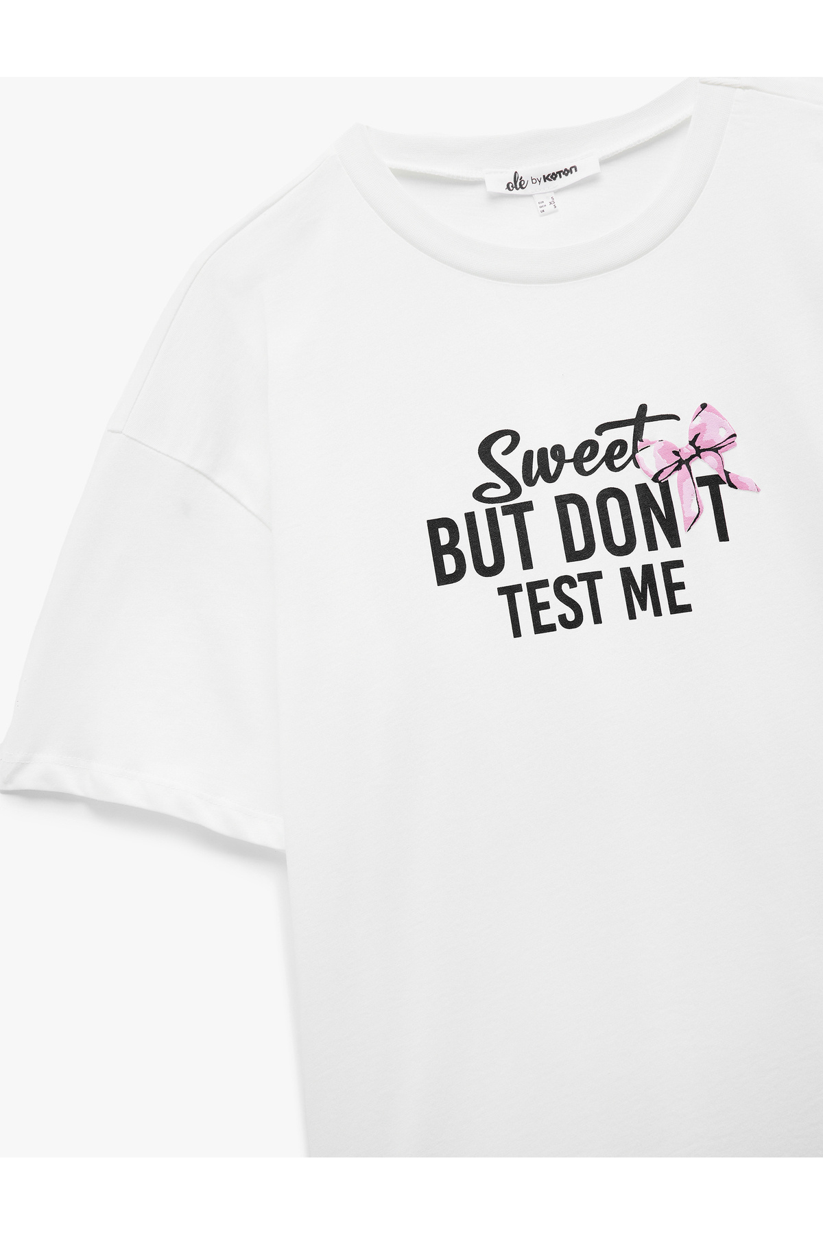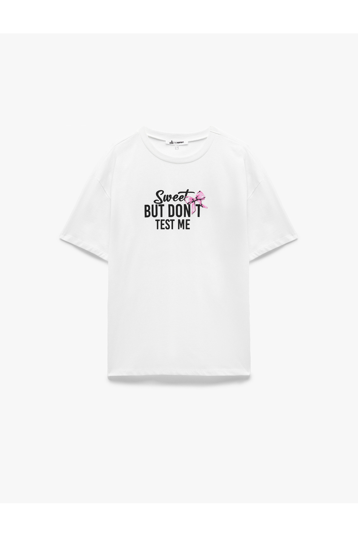 Pamuklu Kısa Kollu Bisiklet Yaka Fiyonk Detaylı Baskılı Oversize Tişört Pamuklu Kısa Kollu Bisiklet Yaka Fiyonk Detaylı Baskılı Oversize Tişört 5SAL10864IK XL
