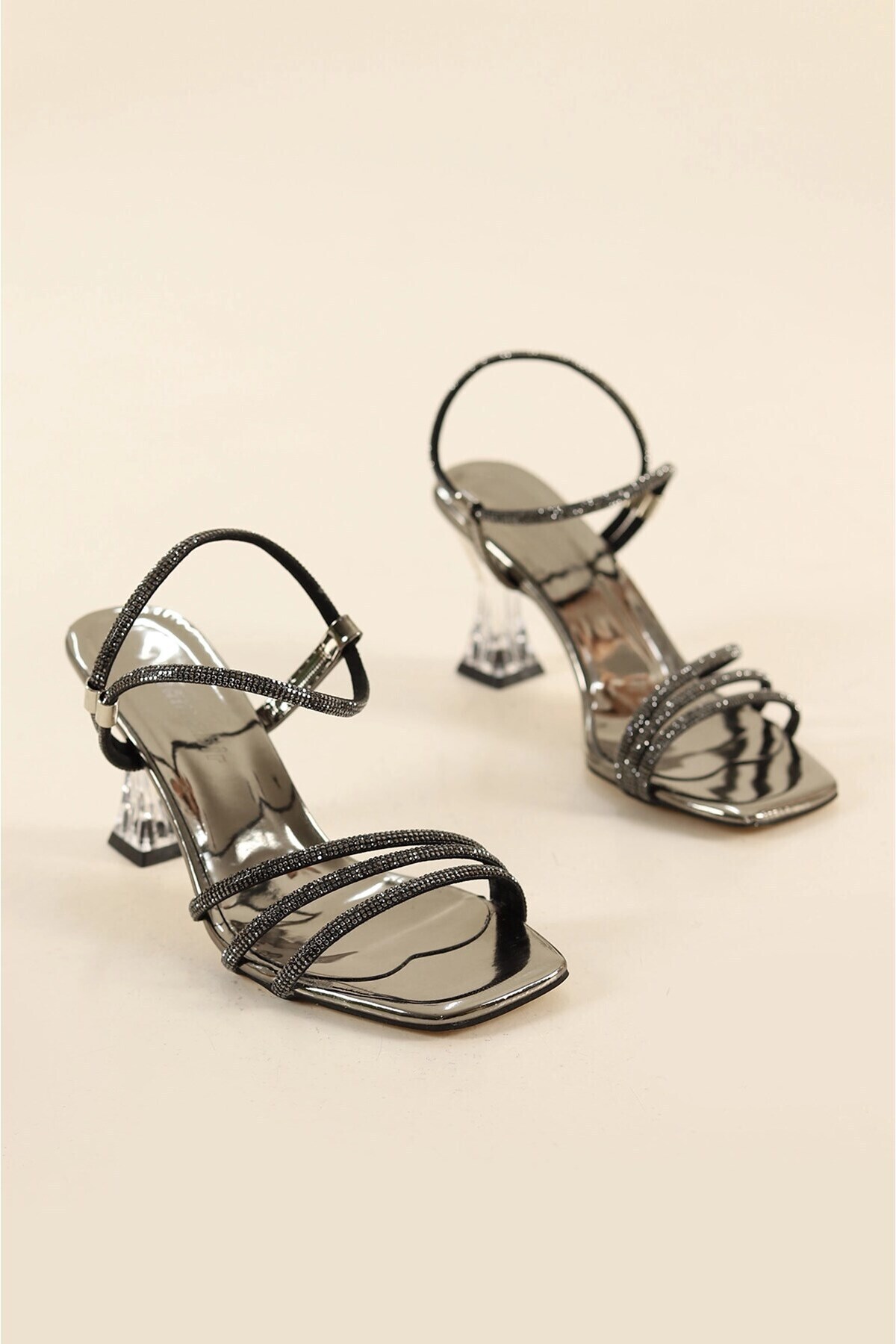 Taşlı Şeffaf Topuklu Bantlı Topuklu Ayakkabı Taşlı Şeffaf Topuklu Bantlı Topuklu Ayakkabı PRA-12695685-097469 40