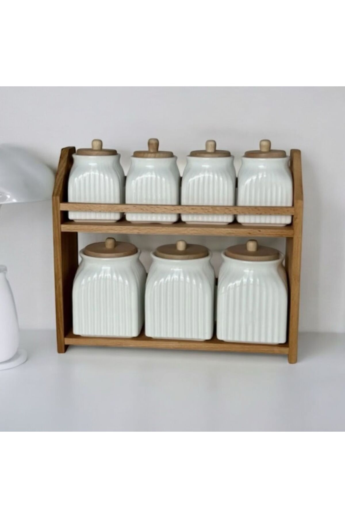 Ahşap Standlı 7’li Porselen Baharat Saklama Kavanoz Seti Baharatlık Takımı Ahşap Standlı 7’li Porselen Baharat Saklama Kavanoz Seti Baharatlık Takımı GÖK-50146 تک سایز