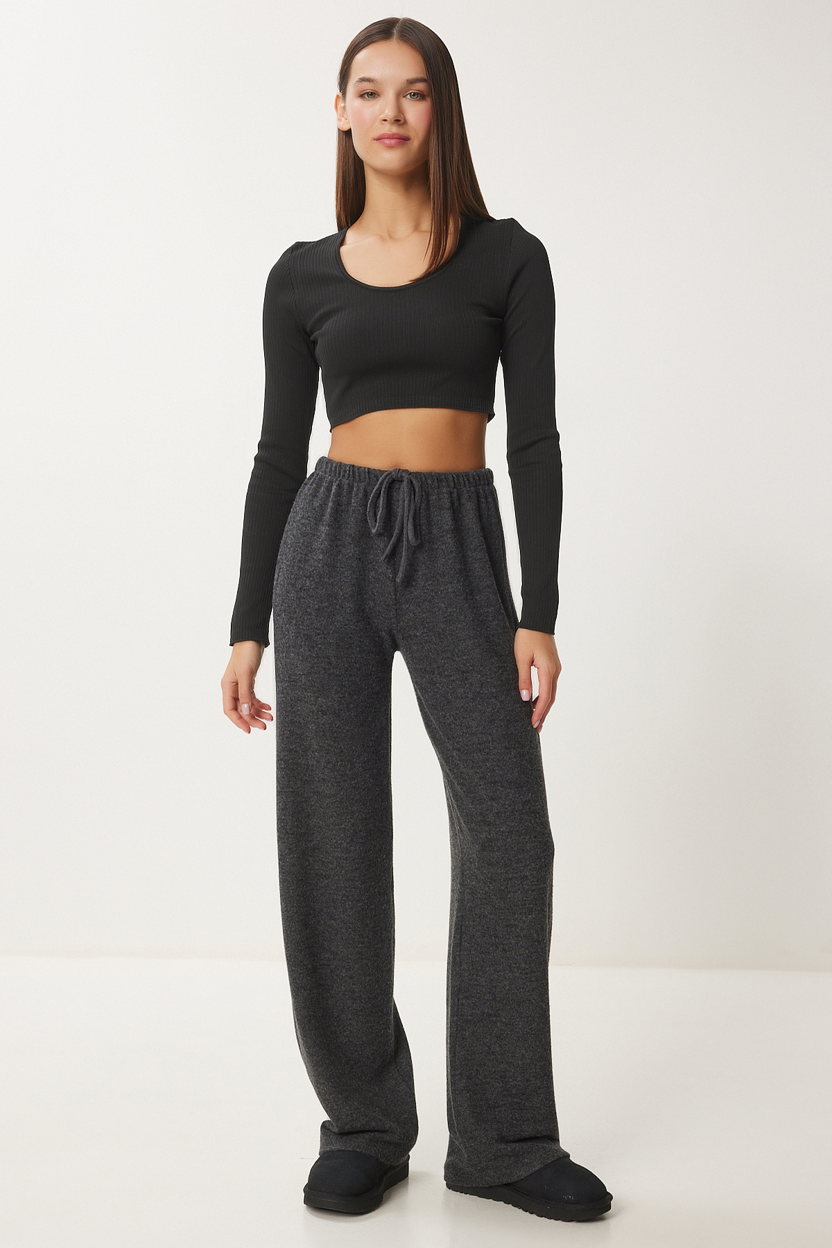 Wide Leg Dokulu Örme Pantolon Wide Leg Dokulu Örme Pantolon M7EFNKM4 2XL