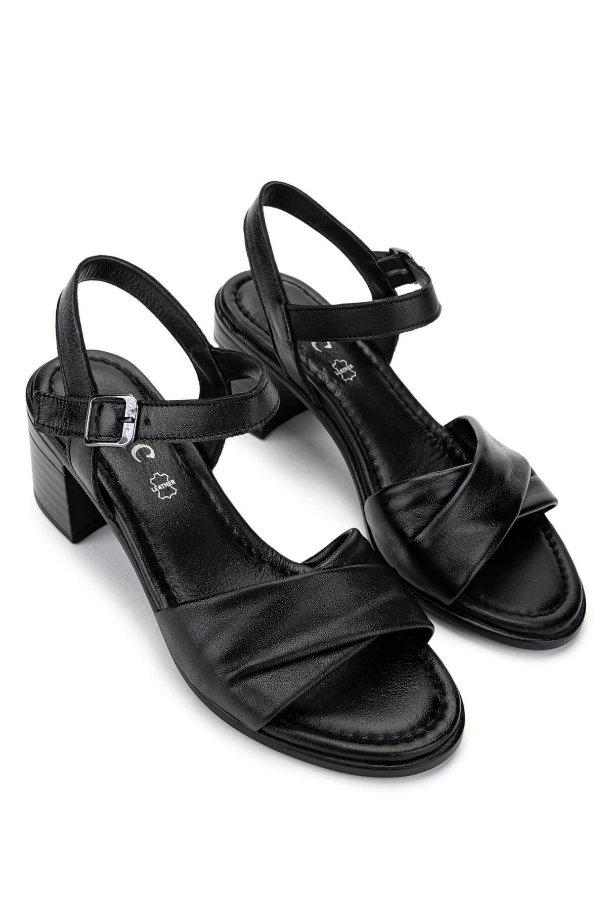 Kadın Hakiki Deri Siyah Deri Topuklu Sandalet Kadın Hakiki Deri Siyah Deri Topuklu Sandalet 882 08 BN SNDLT Y25 42