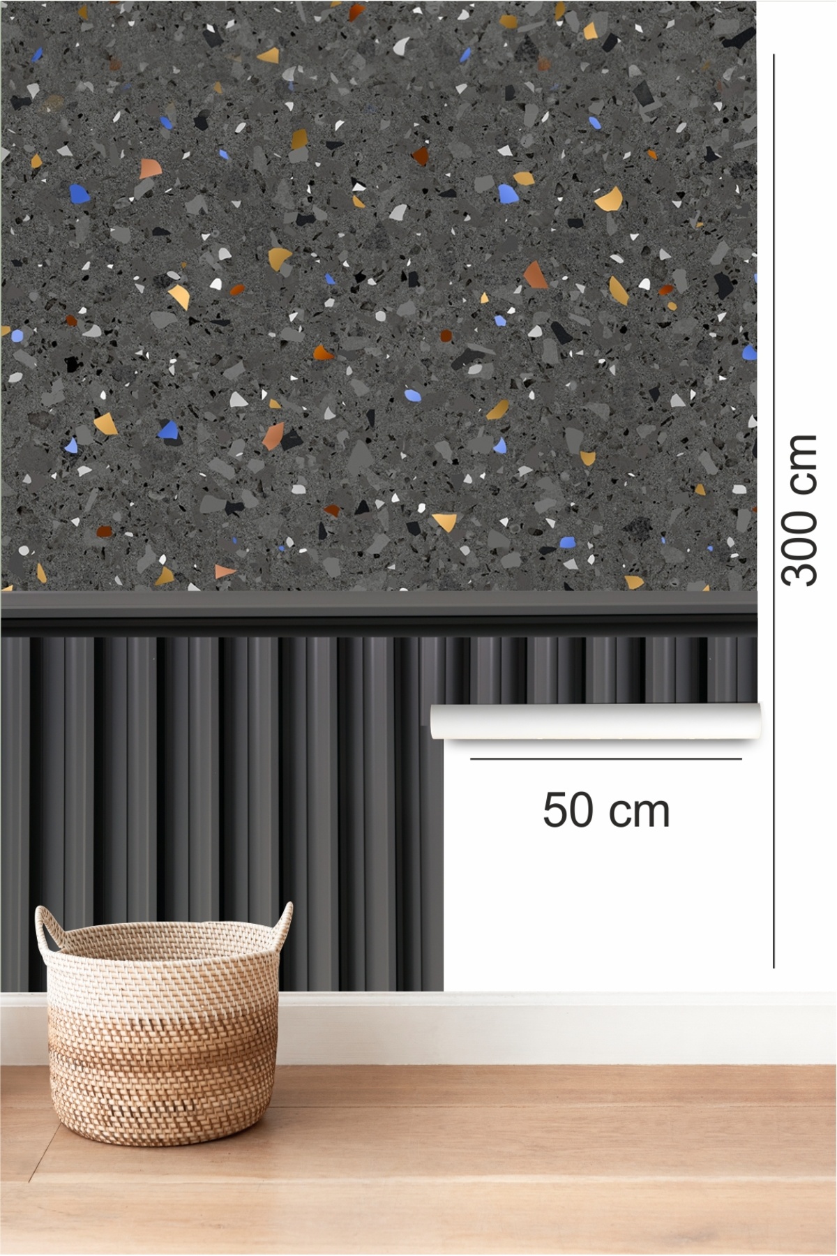 Duvar Kaplama Folyosu Kendinden Yapışkanlı Ahşap Çıta ve Terrazzo Desen Duvar Kaplama Folyosu Kendinden Yapışkanlı Ahşap Çıta ve Terrazzo Desen İBMD132 50 x 300