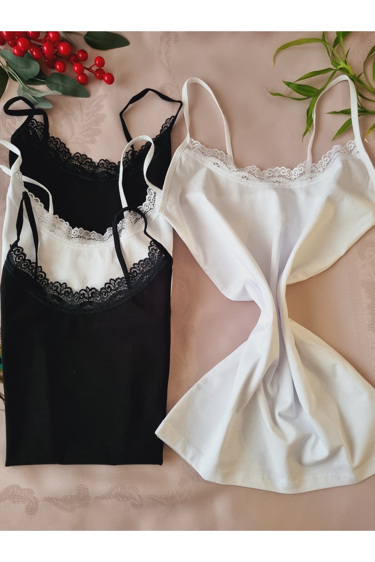 Pamuklu, İnce Dantelli İp Askılı Likralı 4'lü Penye Kadın Atlet ( 2 Siyah, 2 Beyaz) Pamuklu, İnce Dantelli İp Askılı Likralı 4'lü Penye Kadın Atlet ( 2 Siyah, 2 Beyaz) D-6303 XL