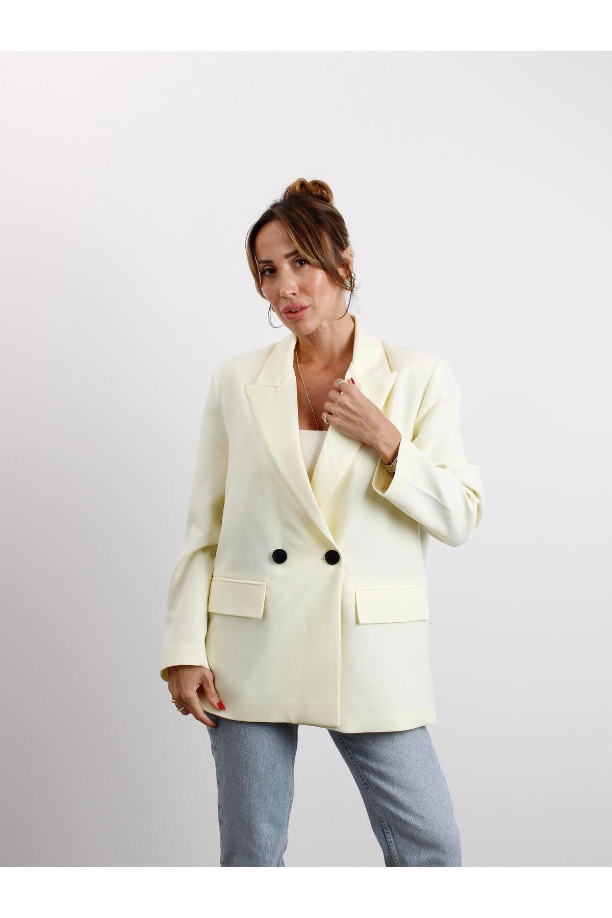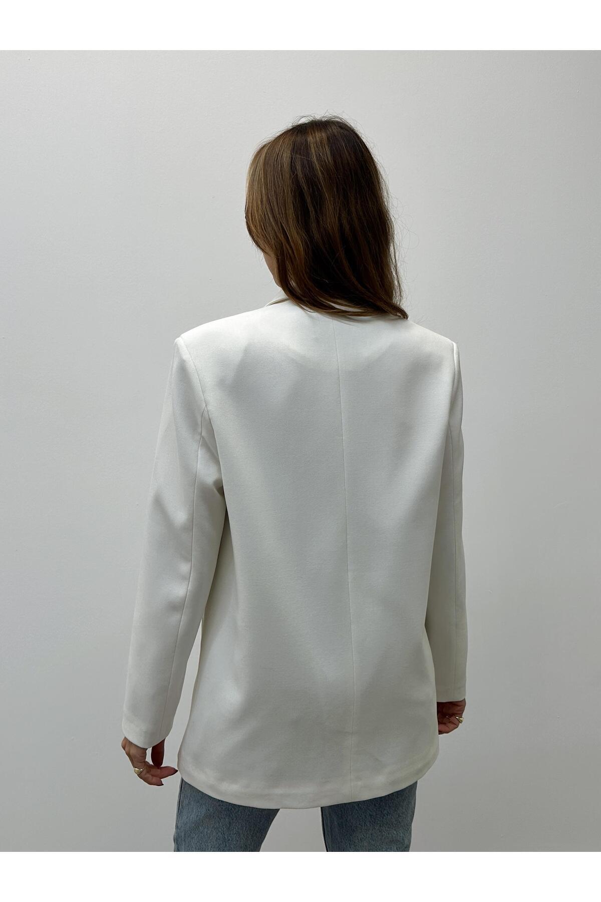 Kadın Poliviskon Kumaş Astarlı Beyaz Blazer Ceket Kadın Poliviskon Kumaş Astarlı Beyaz Blazer Ceket 22KC002006 L