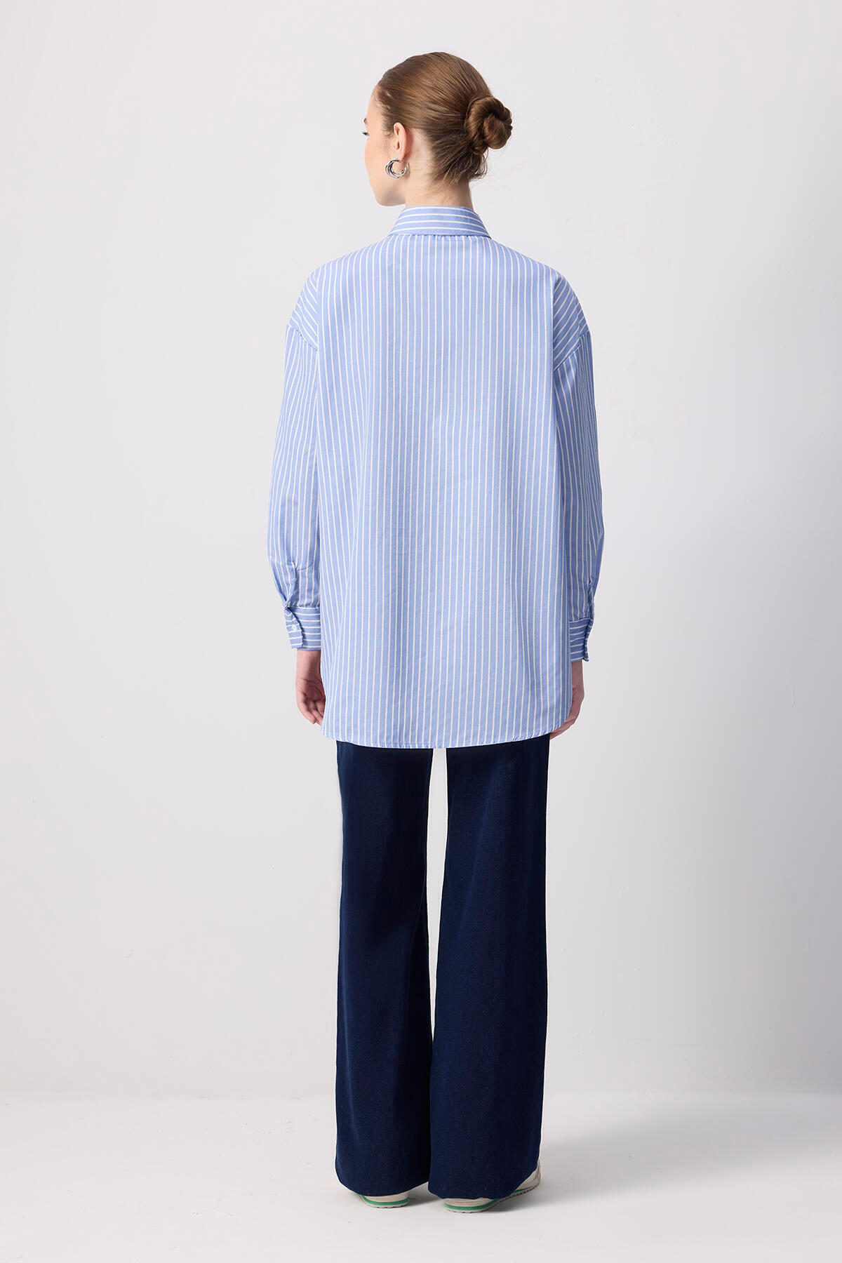 İnce Çizgili Oversıze Gömlek İnce Çizgili Oversıze Gömlek 25Y2EBU001 L