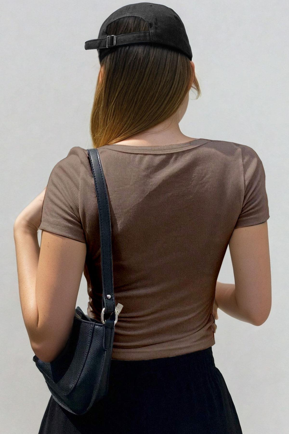 Kadın Açık Kahve Vizon U Yaka Kısa Kollu Fitilli Kaşkorse Body T-shirt Kadın Açık Kahve Vizon U Yaka Kısa Kollu Fitilli Kaşkorse Body T-shirt T2000 XL/2XL
