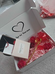 Çekmeceli Kutuda Mıknatıslı Siyah Kırmızı Kalpli Yonca Kolye ve Kırmızı Sonsuzluk Gülü-Hediye Seti Çekmeceli Kutuda Mıknatıslı Siyah Kırmızı Kalpli Yonca Kolye ve Kırmızı Sonsuzluk Gülü-Hediye Seti RW028097 تک سایز