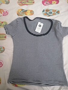 Kadın İnce Çizgili Siyah-Beyaz U Yaka Kısa Kollu Fitilli Kaşkorse Bluz Body Kadın İnce Çizgili Siyah-Beyaz U Yaka Kısa Kollu Fitilli Kaşkorse Bluz Body B2000 XL/2XL