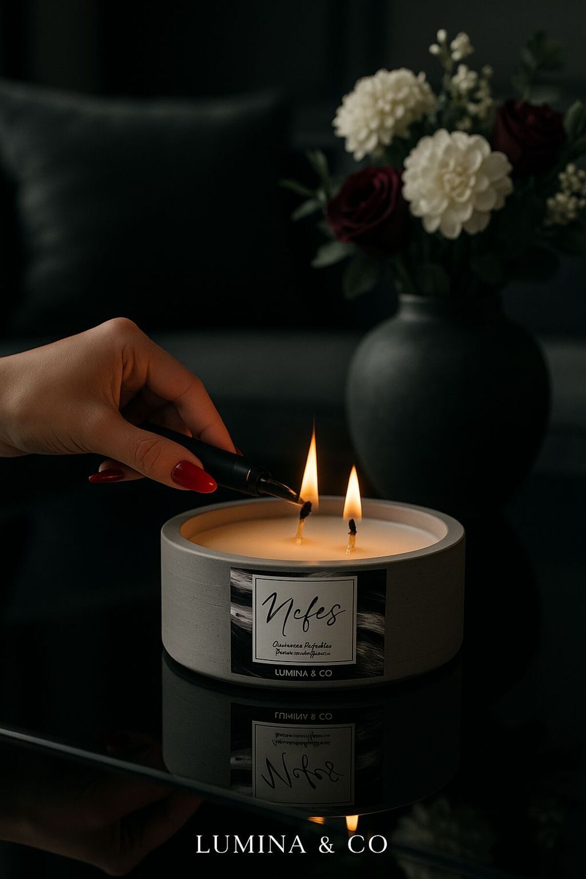 Üç Fitilli - Kiraz Çiçeği Kokulu Beton Mum Üç Fitilli - Kiraz Çiçeği Kokulu Beton Mum lumina54 تک سایز