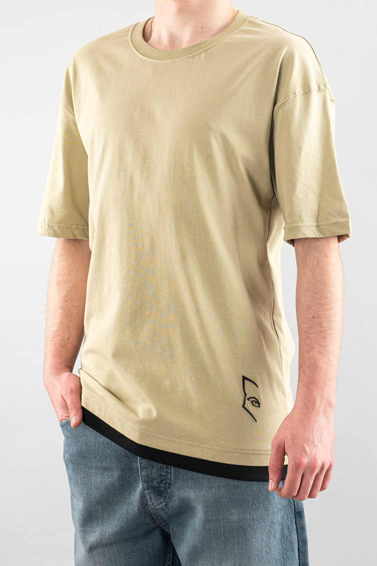 Erkek Özel Bisiklet Yaka Tişört Basic Yarı Owersize Düz Baskılı Haki T-shirt Erkek Özel Bisiklet Yaka Tişört Basic Yarı Owersize Düz Baskılı Haki T-shirt T-602 2XL