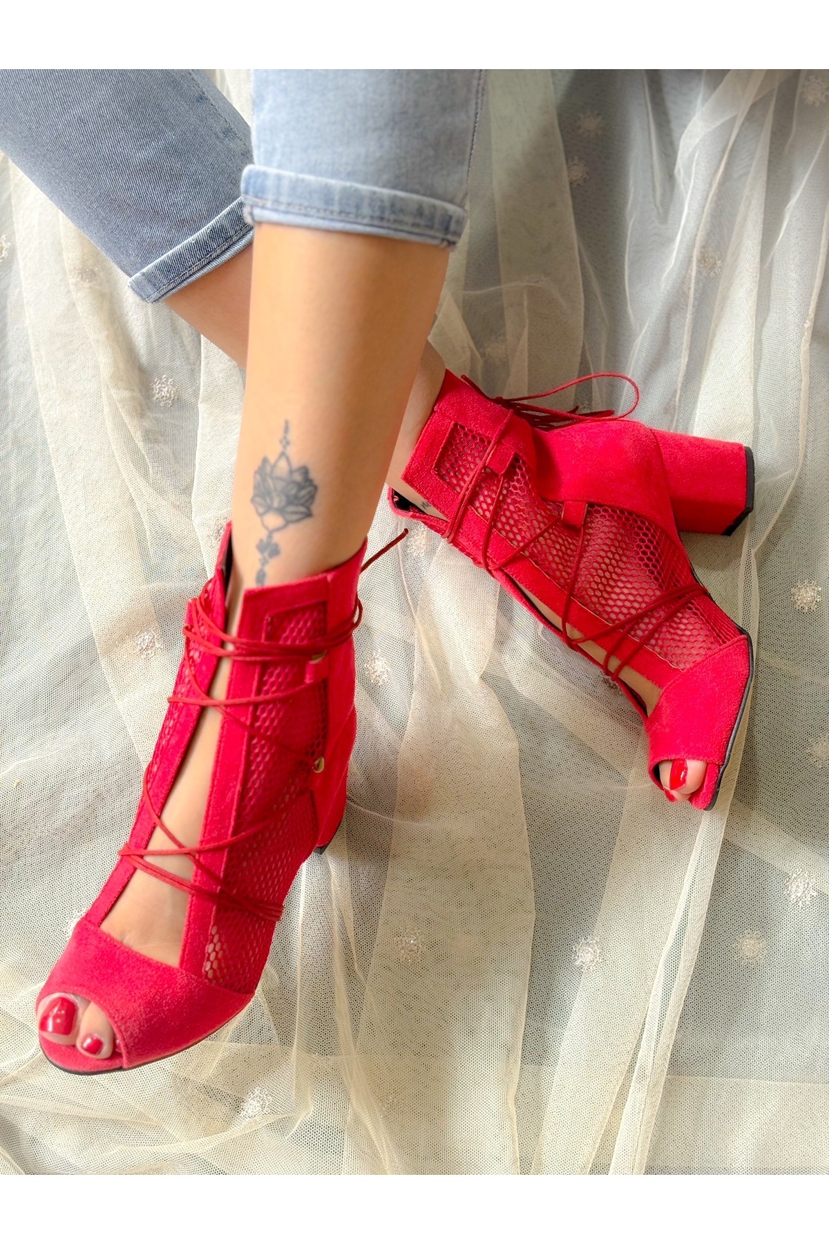 SMİLE KIRMIZI SÜET FİLELİ 5 CM TOPUKLU YAZLIK BOT SANDALET SMİLE KIRMIZI SÜET FİLELİ 5 CM TOPUKLU YAZLIK BOT SANDALET smileberfona25 43