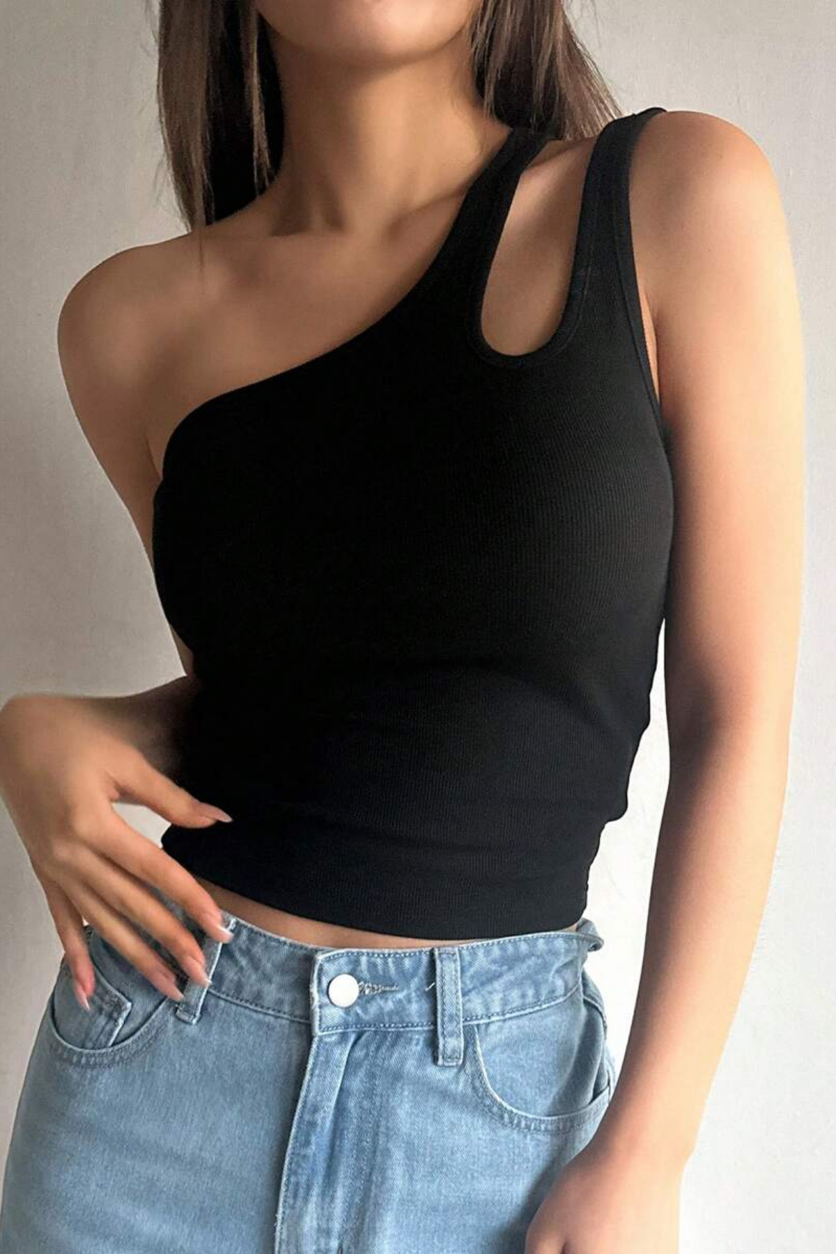 Kadın Siyah Tek Omuz Kaşkorse Top Bluz Kadın Siyah Tek Omuz Kaşkorse Top Bluz M-1400 L/XL