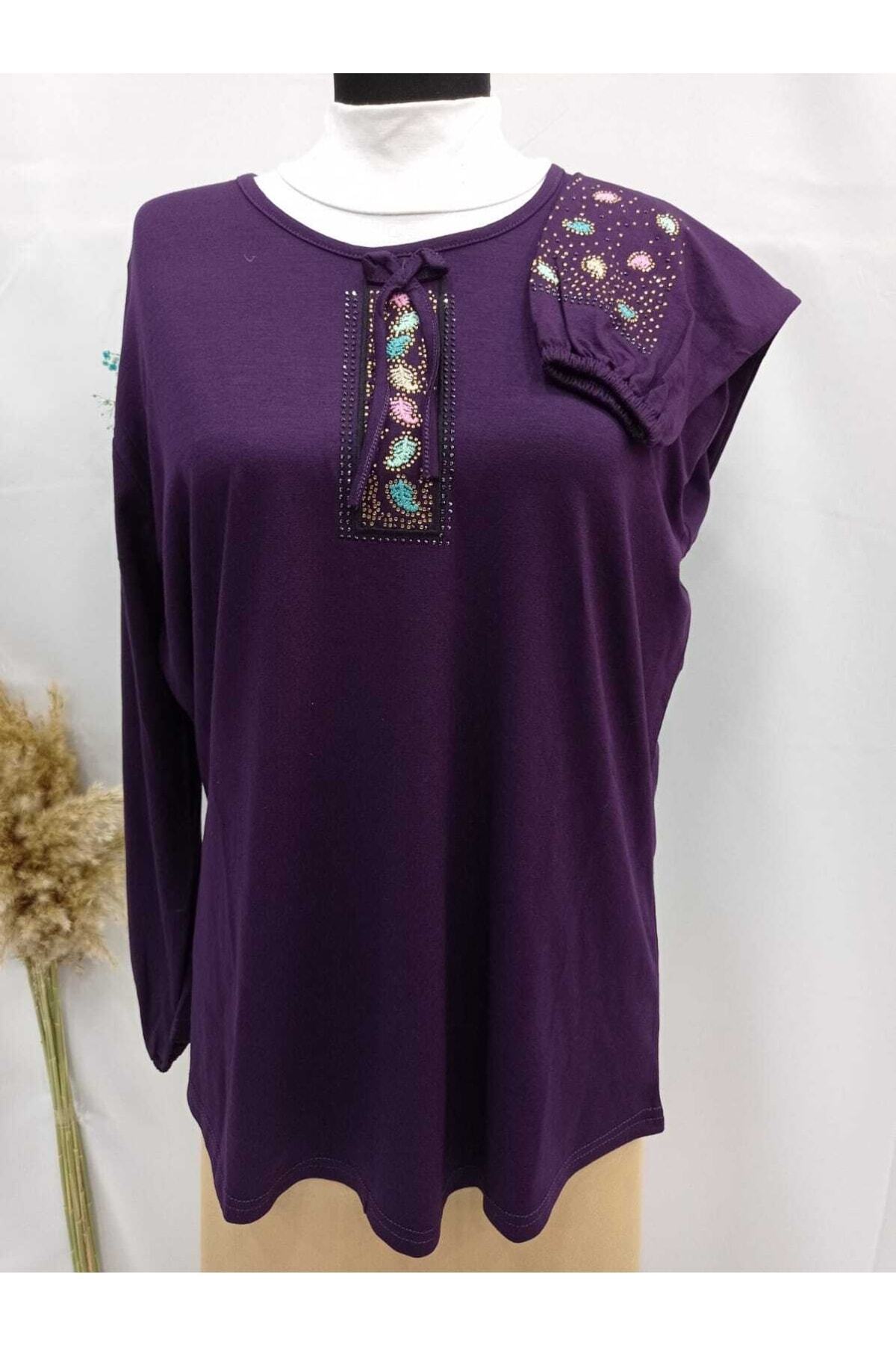 Rahat Kesim V Yaka Mor Anne Kadın Penye Bluz Rahat Kesim V Yaka Mor Anne Kadın Penye Bluz B280 XL