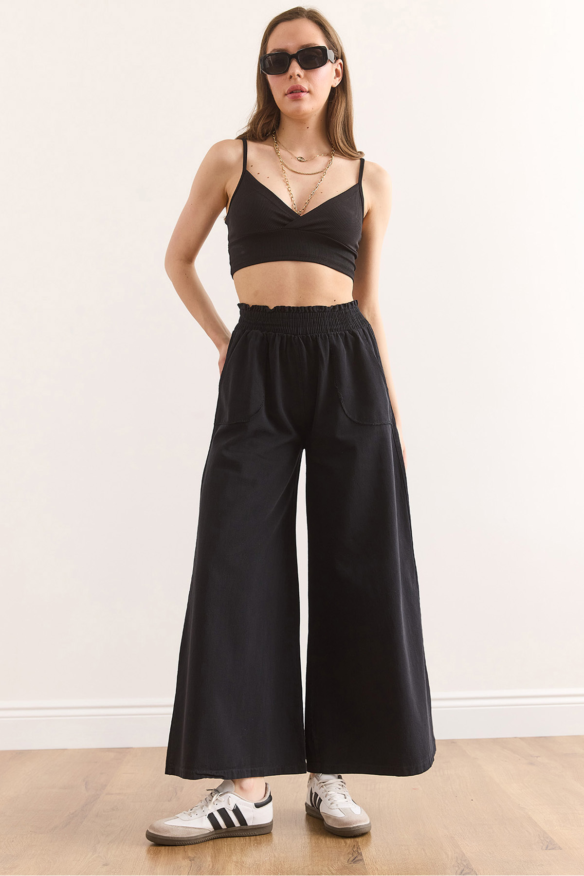 Kadın Kahverengi Beli Lastikli Cepli İspanyol Paça Pamuk Gabardin Pantolon PNT-19000314 Kadın Kahverengi Beli Lastikli Cepli İspanyol Paça Pamuk Gabardin Pantolon PNT-19000314 PNT-19000314/Kahverengi XL