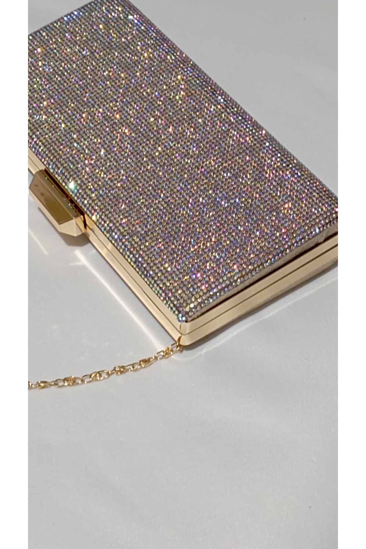 Altın Taşlı Abiye Çanta Gold Gece Çantası Altın Taşlı Abiye Çanta Gold Gece Çantası Işıltılı taşlı Gece Çantası تک سایز