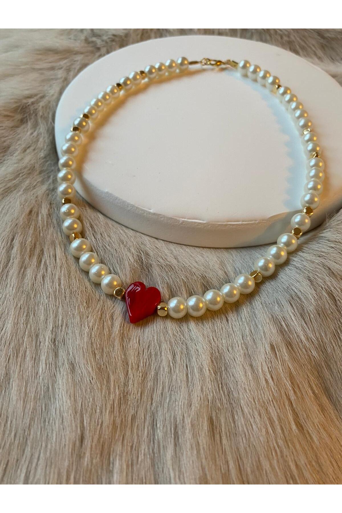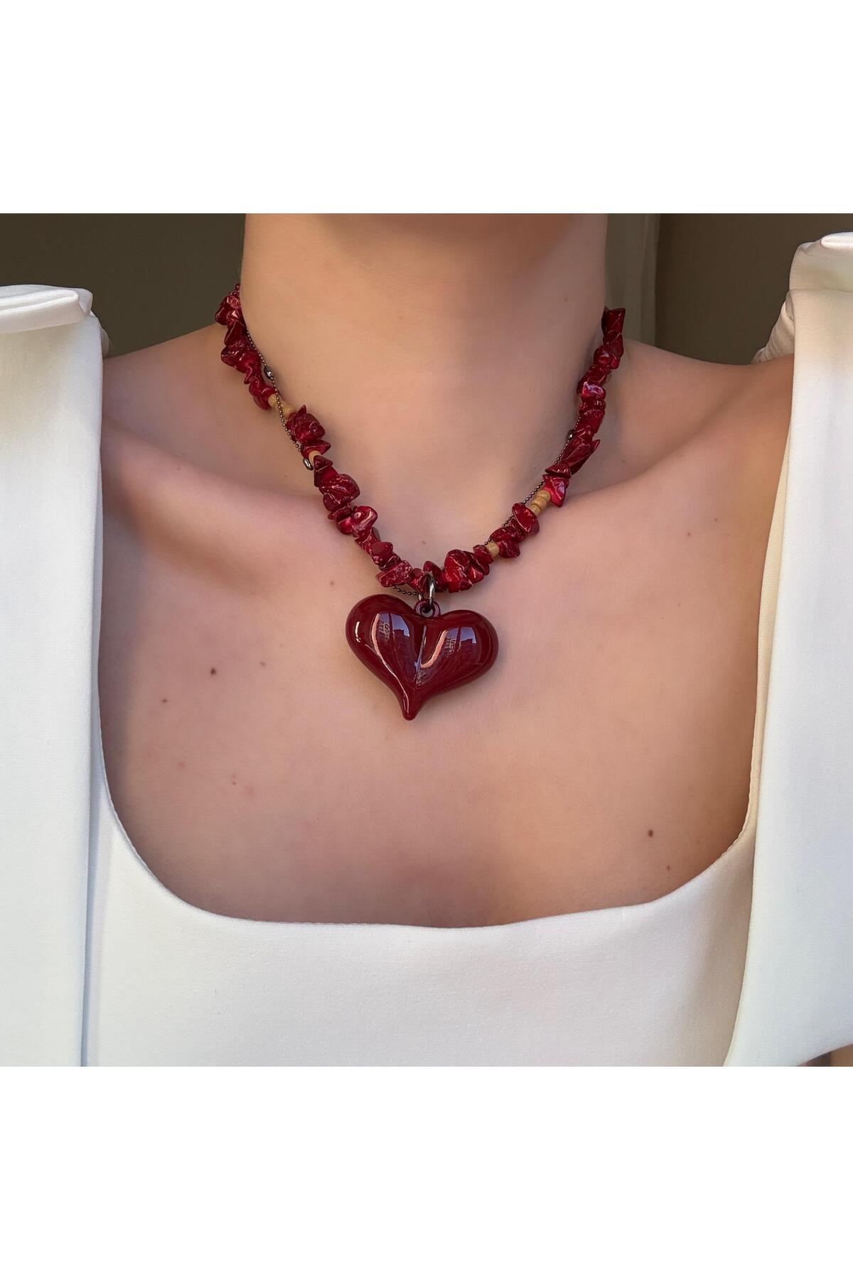 Bordo Kırık Boncuklu Kalp Kolye Bordo Kırık Boncuklu Kalp Kolye alc7495 0