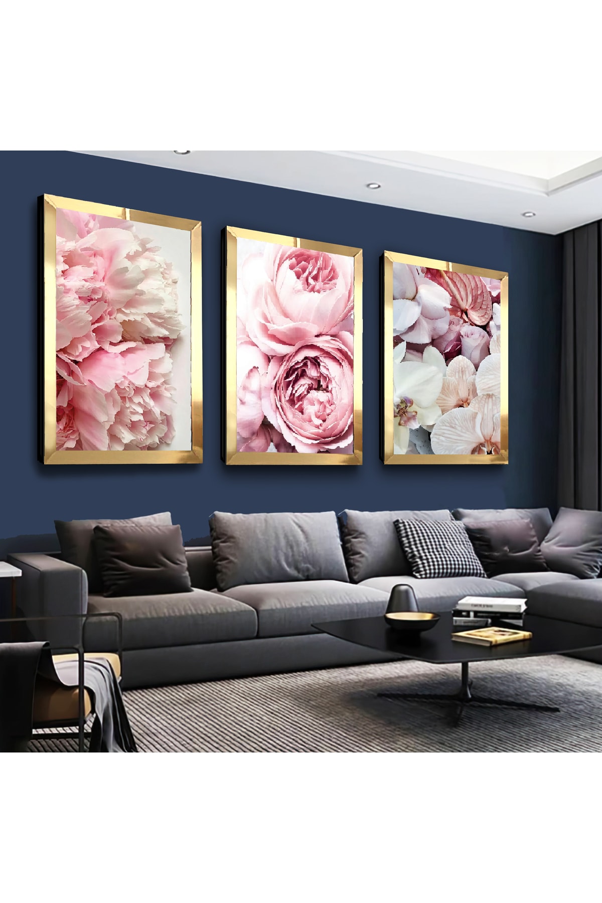 GOLD AYNALI PLEKSİ ÇERÇEVELİ BEYAZ VE PEMBE ÇİÇEKLER İKİLİ MDF TABLO SETİ GOLD AYNALI PLEKSİ ÇERÇEVELİ BEYAZ VE PEMBE ÇİÇEKLER İKİLİ MDF TABLO SETİ TMP-60A-C 50 x 70