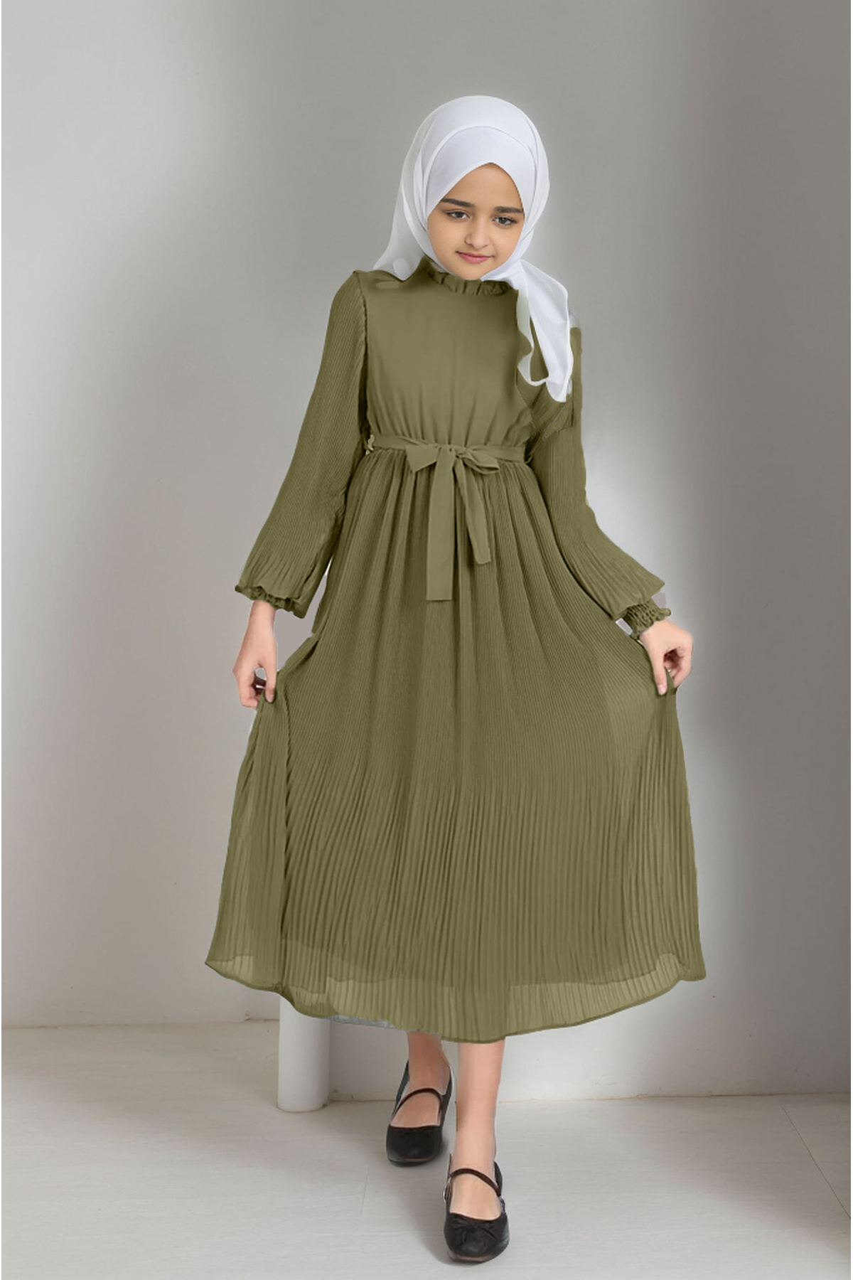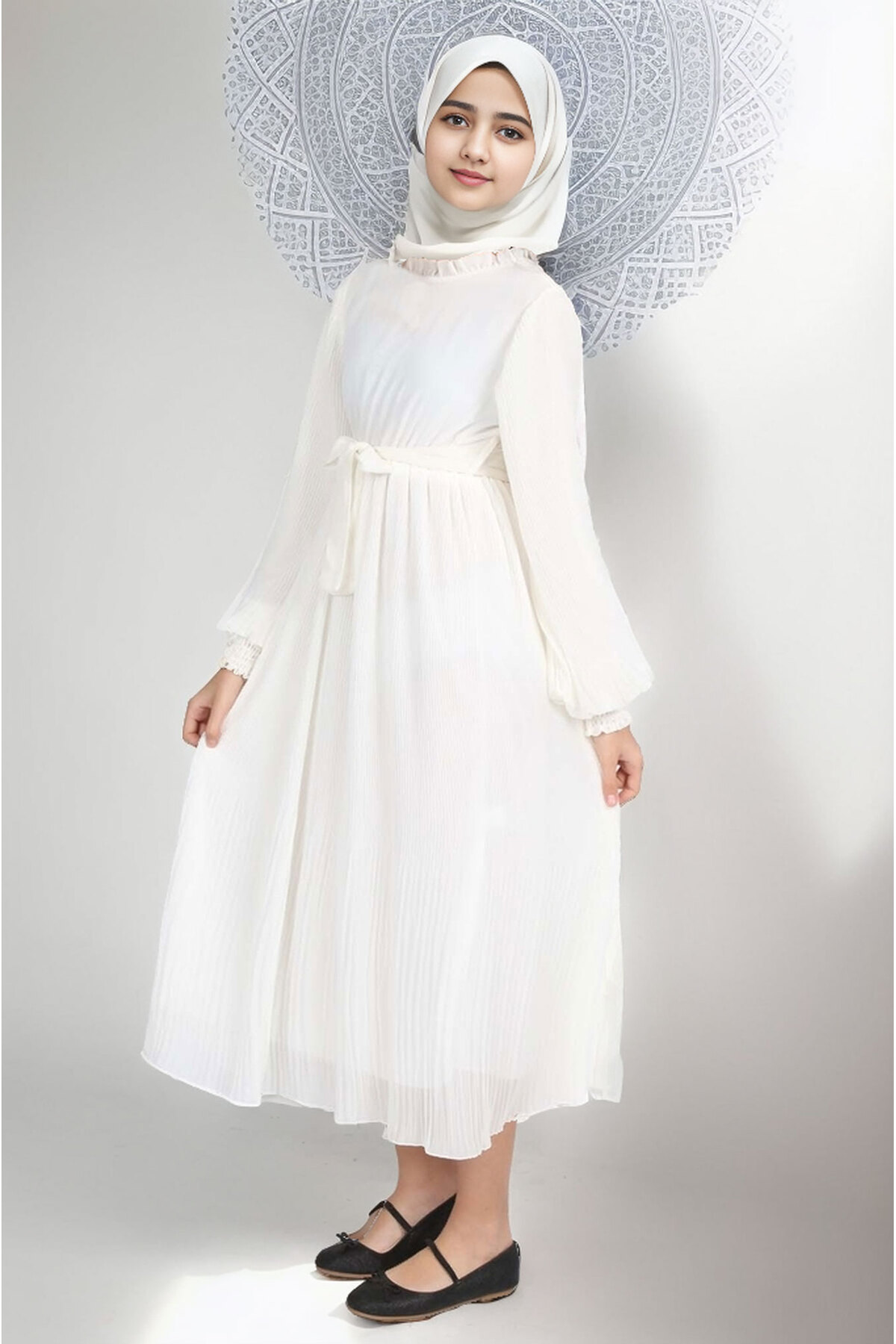 Kız Çocuk Uzun Pliseli Tesettür Elbise Kız Çocuk Uzun Pliseli Tesettür Elbise ELB-3035 6