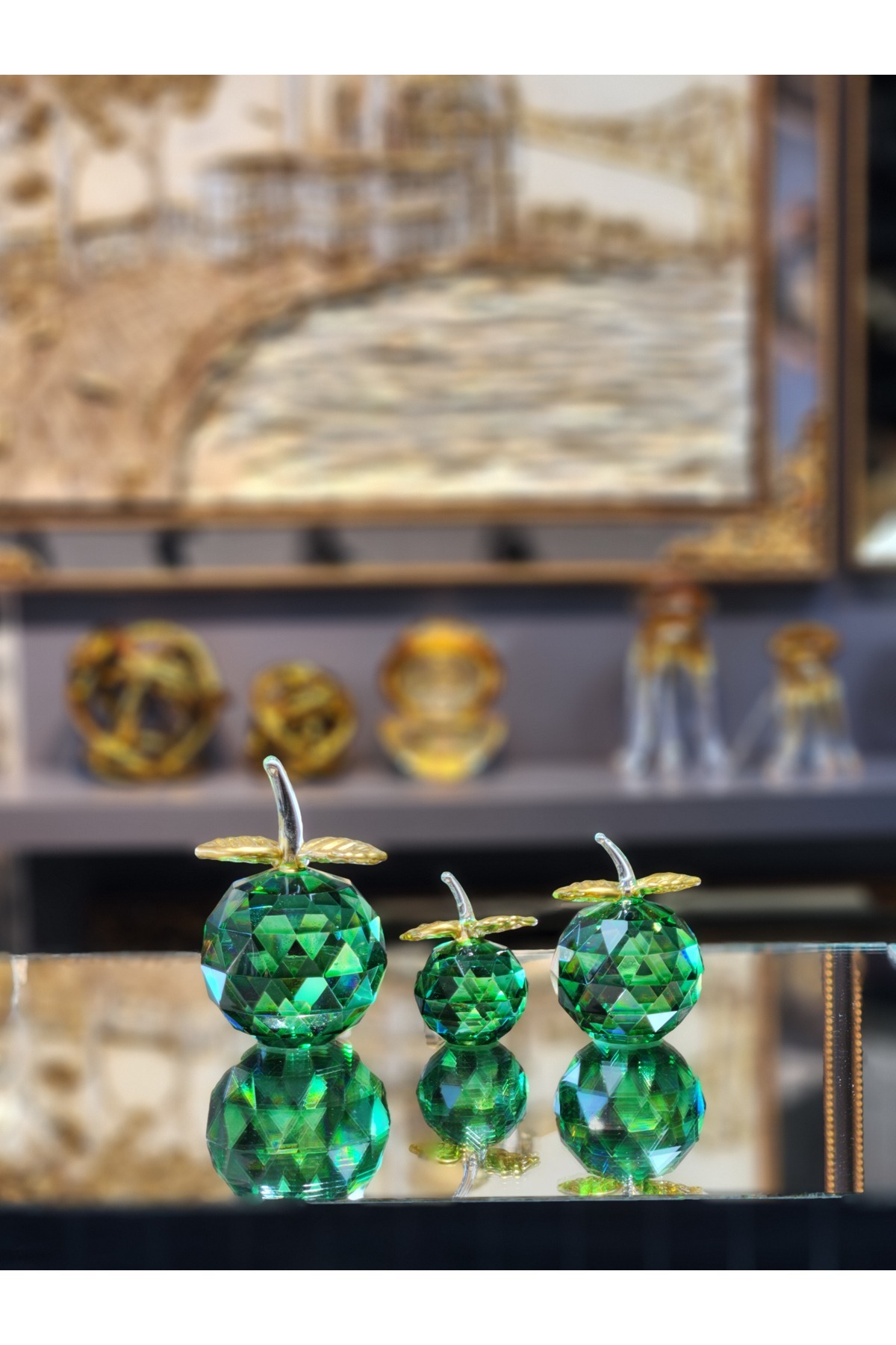 Kristal Cam Elma Dekor 3lü Set Kristal Cam Elma Dekor 3lü Set KRISTALELMAKUCUK تک سایز