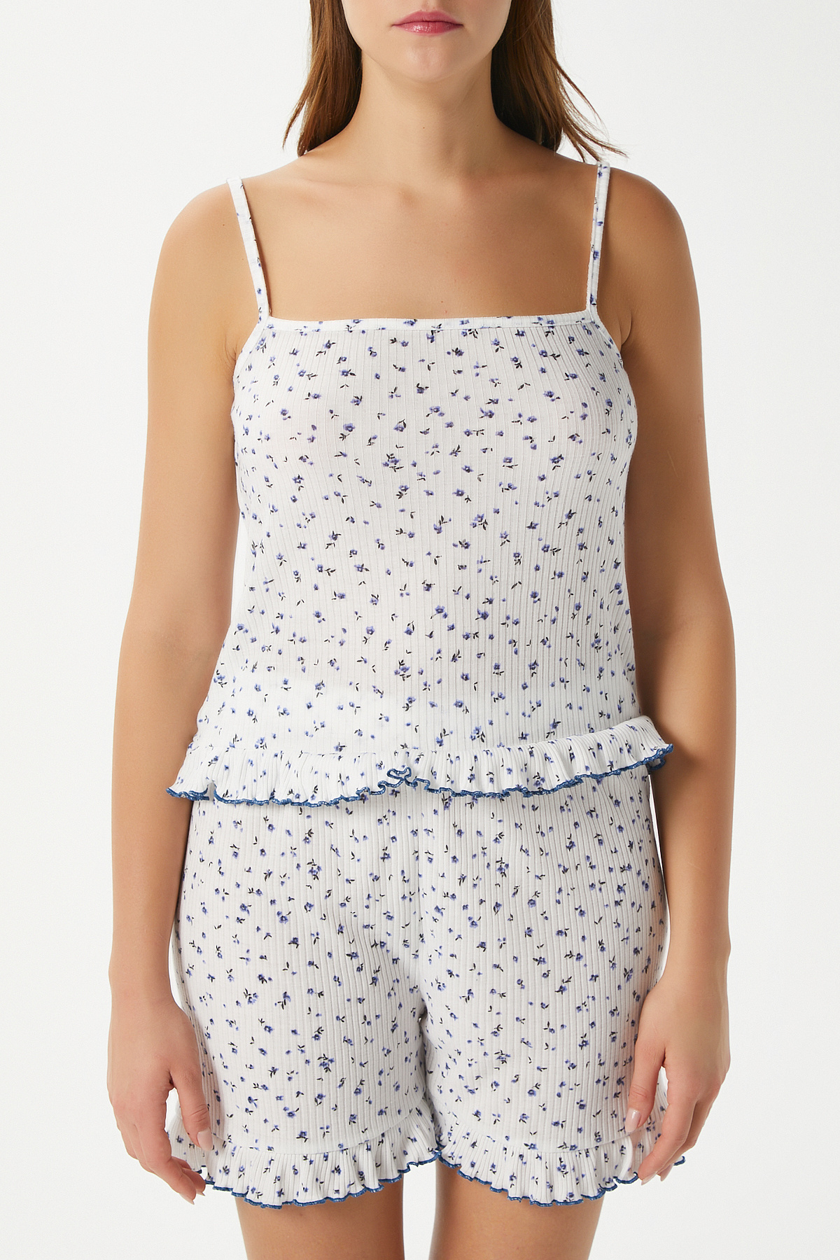 Kadın Paula Askılı Mavi Fırfır Şortlu Pijama Takımı Kadın Paula Askılı Mavi Fırfır Şortlu Pijama Takımı 1476 4XL