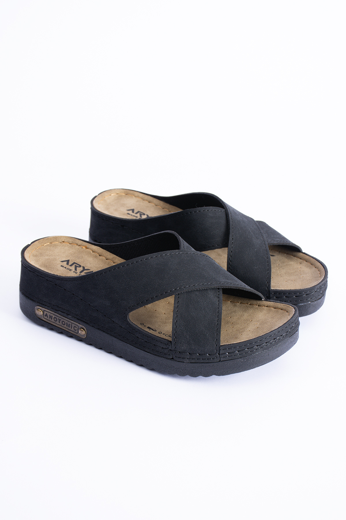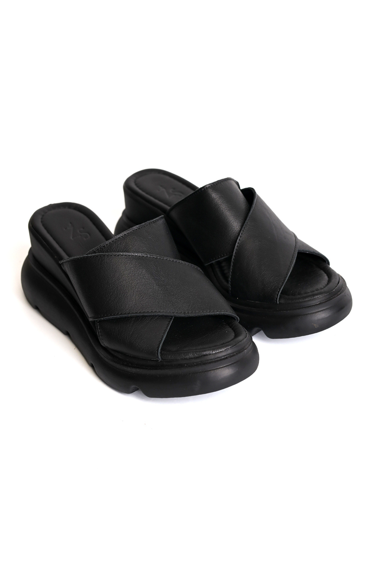 Hakiki Deri El Yapımı Dolgu Topuk Çapraz Bantlı Kadın Terlik Siyah Hakiki Deri El Yapımı Dolgu Topuk Çapraz Bantlı Kadın Terlik Siyah 04463 41
