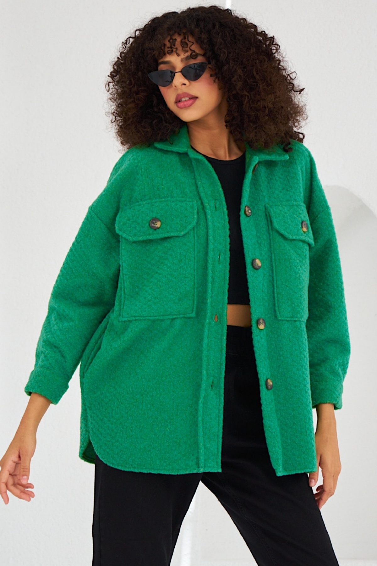 Kadın Lacivert Dikme Fiyonk Aksesuarlı Pamuklu Oversize Gömlek Kadın Lacivert Dikme Fiyonk Aksesuarlı Pamuklu Oversize Gömlek SHZ231 L