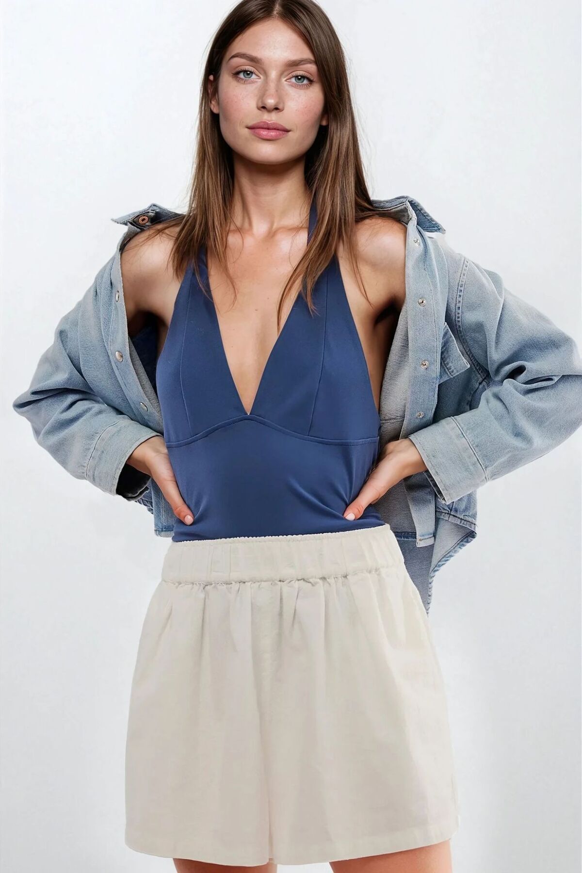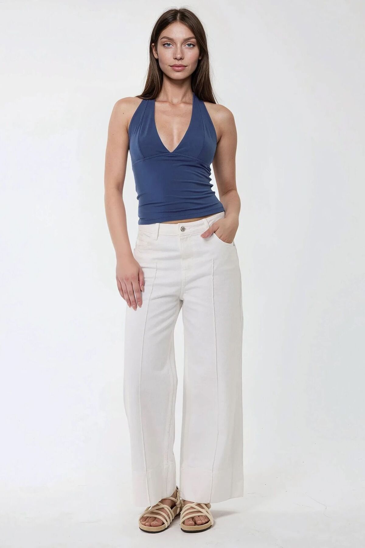Dar V Yaka Boyundan Bağlı Örme Üst Dar V Yaka Boyundan Bağlı Örme Üst M8CYILB6 XL