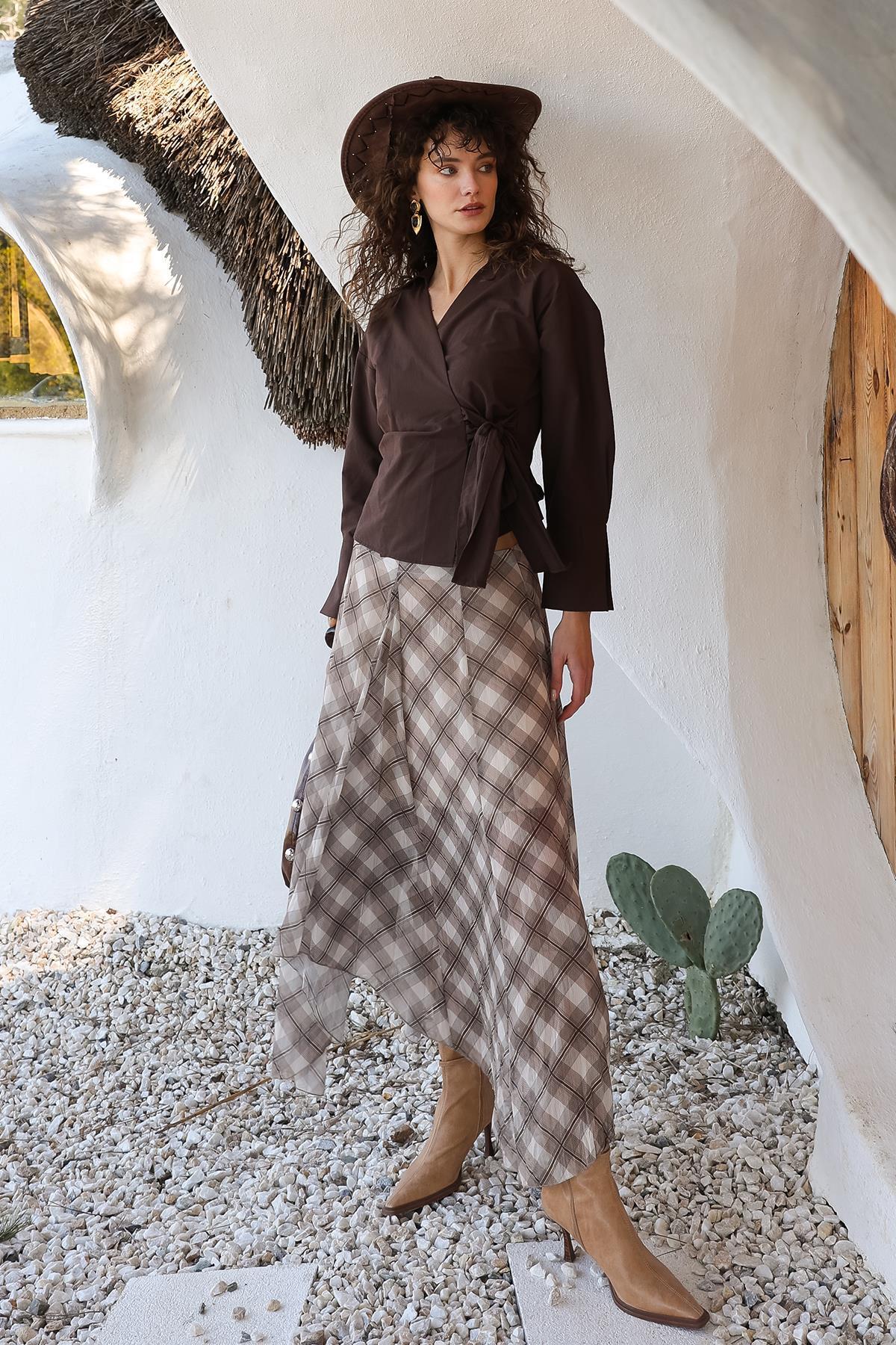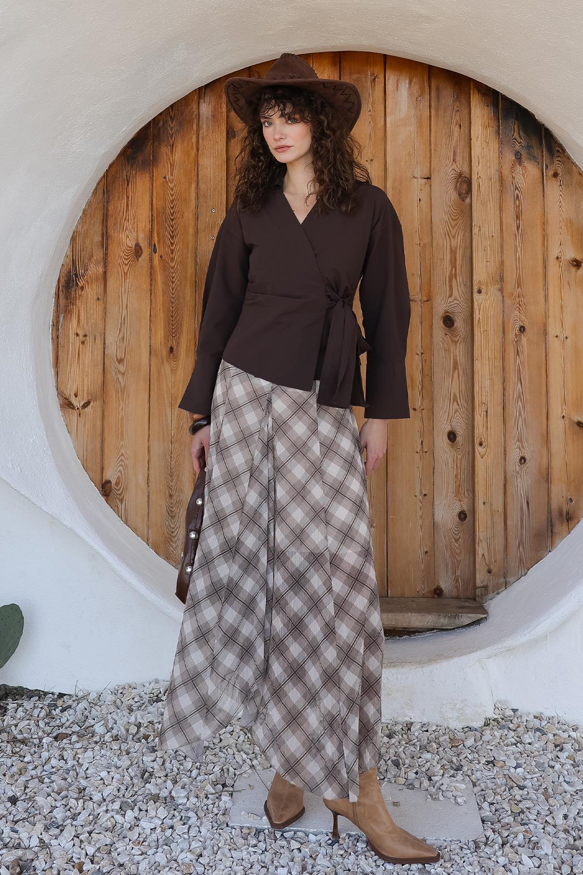Kareli Şifon Etek BEJ 7063 Kareli Şifon Etek BEJ 7063 L