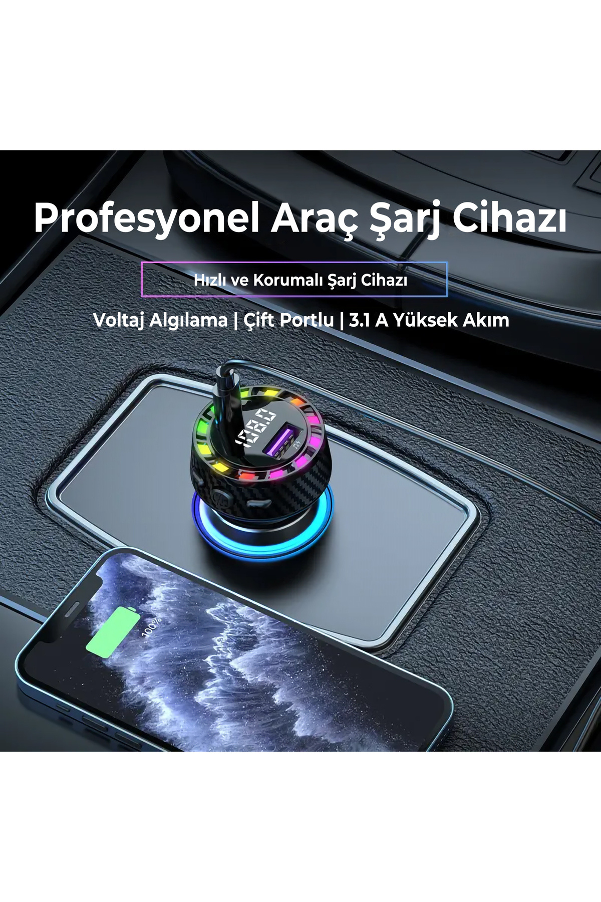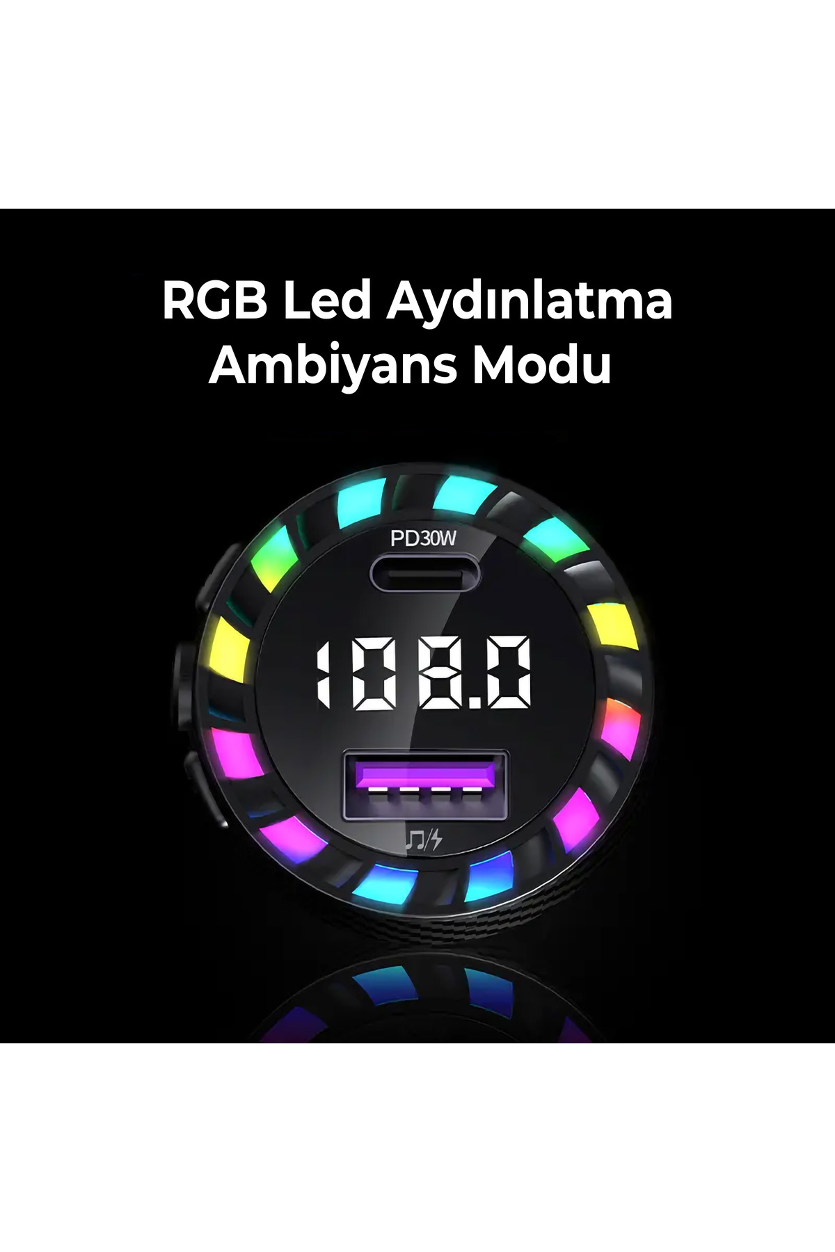Rgb Işıklı 5.3 Bluetoothlu Çakmaklık 30w Usb Type C Hızlı Şarjlı Araç Kiti - Eller Serbest Modlu Rgb Işıklı 5.3 Bluetoothlu Çakmaklık 30w Usb Type C Hızlı Şarjlı Araç Kiti - Eller Serbest Modlu FR-423 تک سایز
