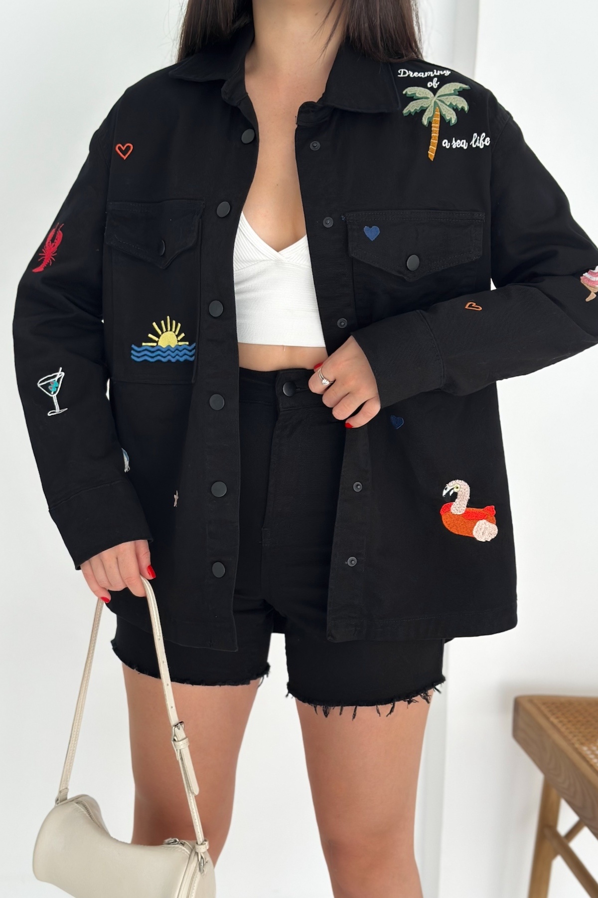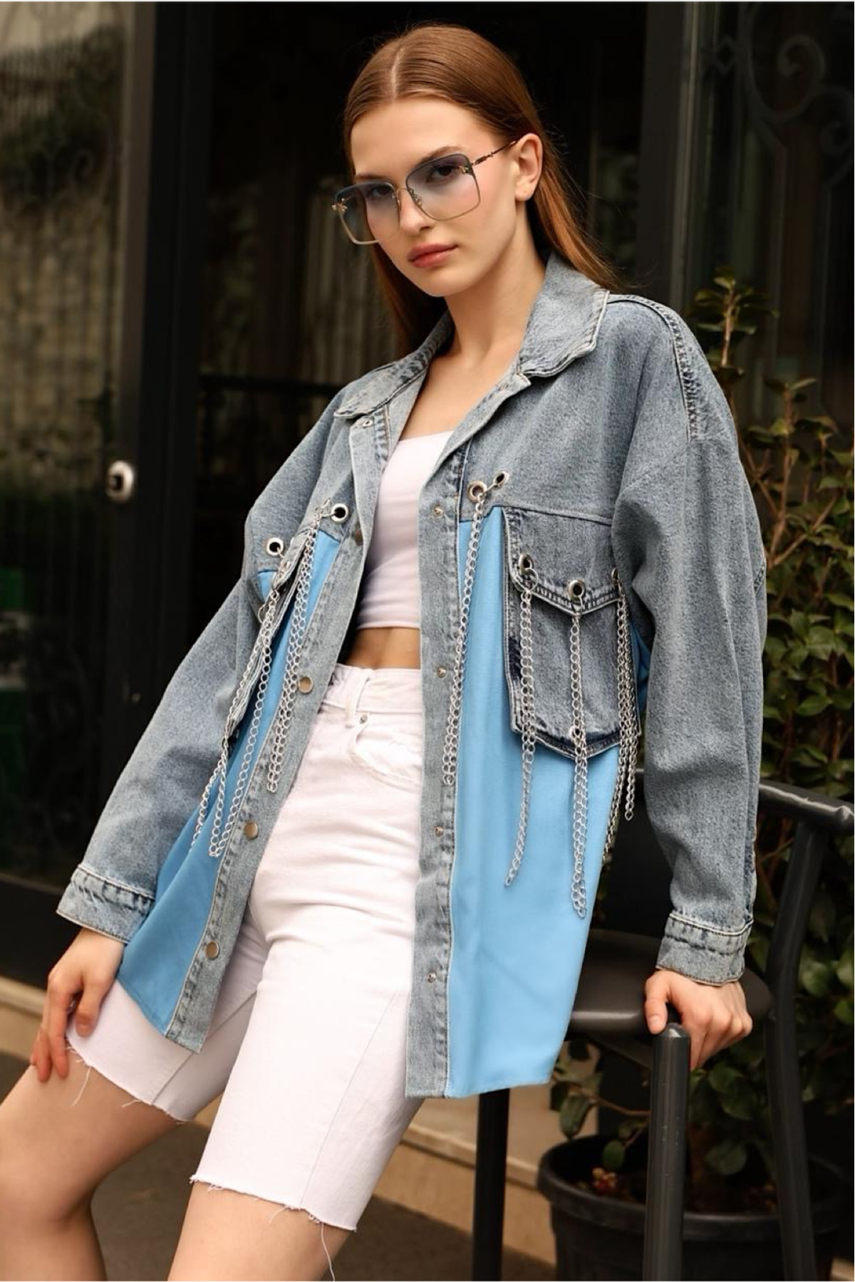 Oversize Premium Denim Kot Ceket %100 Pamuk Pul Payet İşlemeli Oversize Premium Denim Kot Ceket %100 Pamuk Pul Payet İşlemeli SHZ200 L