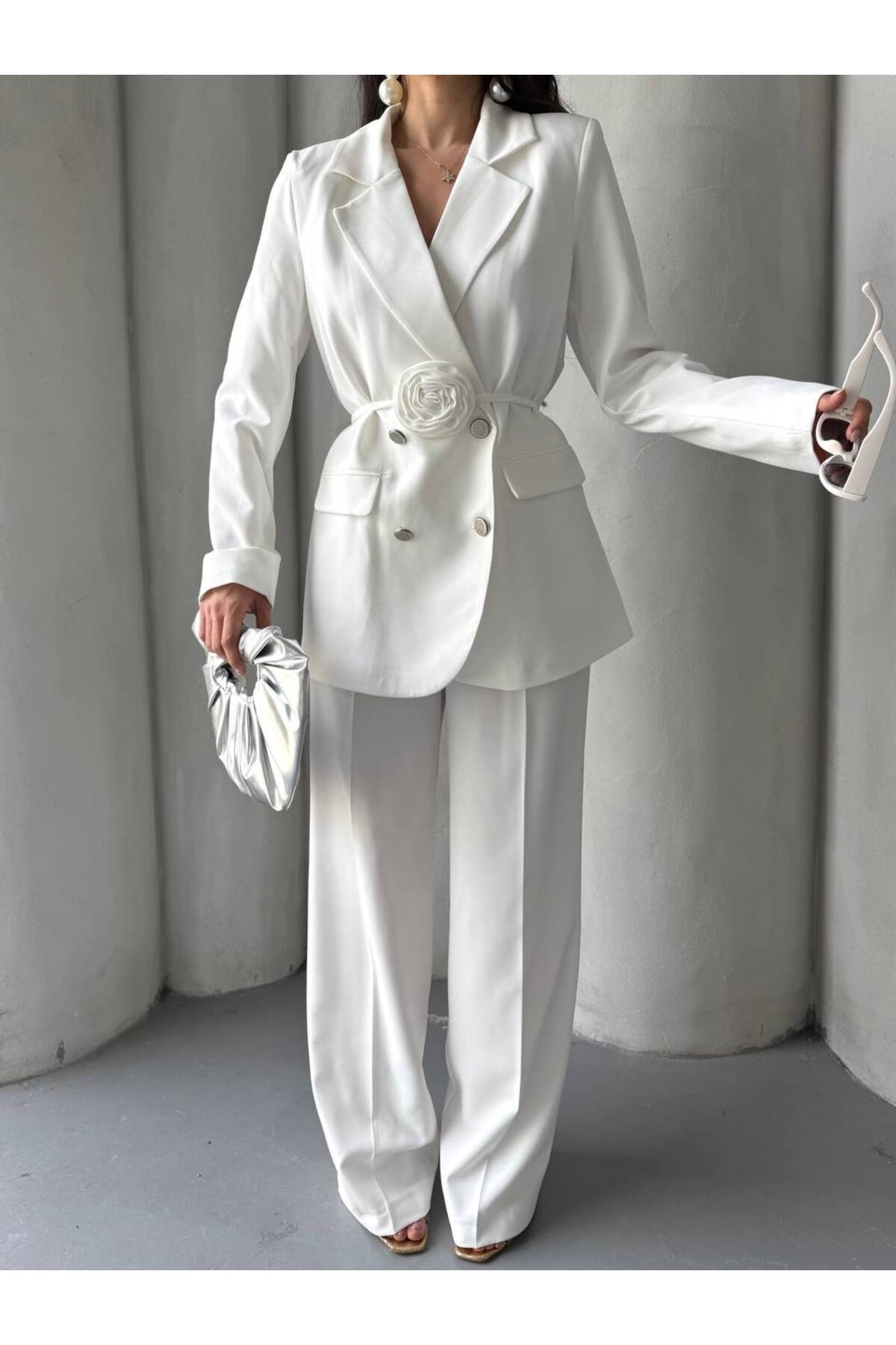 Kadın İkili Blazer Ceket Pantolon Takım Aksesuar ve Düğme Detaylı Bol Paça Kadın İkili Blazer Ceket Pantolon Takım Aksesuar ve Düğme Detaylı Bol Paça PRA-12207169-738094 42