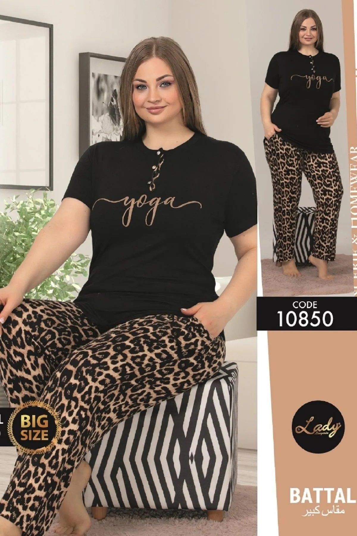 Düğme Yakalı,Kısa Kollu Battal Beden Kadın Pijama Takımı Düğme Yakalı,Kısa Kollu Battal Beden Kadın Pijama Takımı 110s1x6 4XL