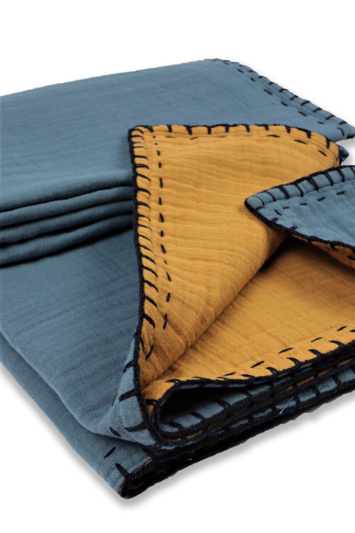 Müslin Çift Taraflı El İşili Bebek Battaniye (Yıkanmıştır) 100X100 cm Hardal İndigo Müslin Çift Taraflı El İşili Bebek Battaniye (Yıkanmıştır) 100X100 cm Hardal İndigo 100181 تک سایز