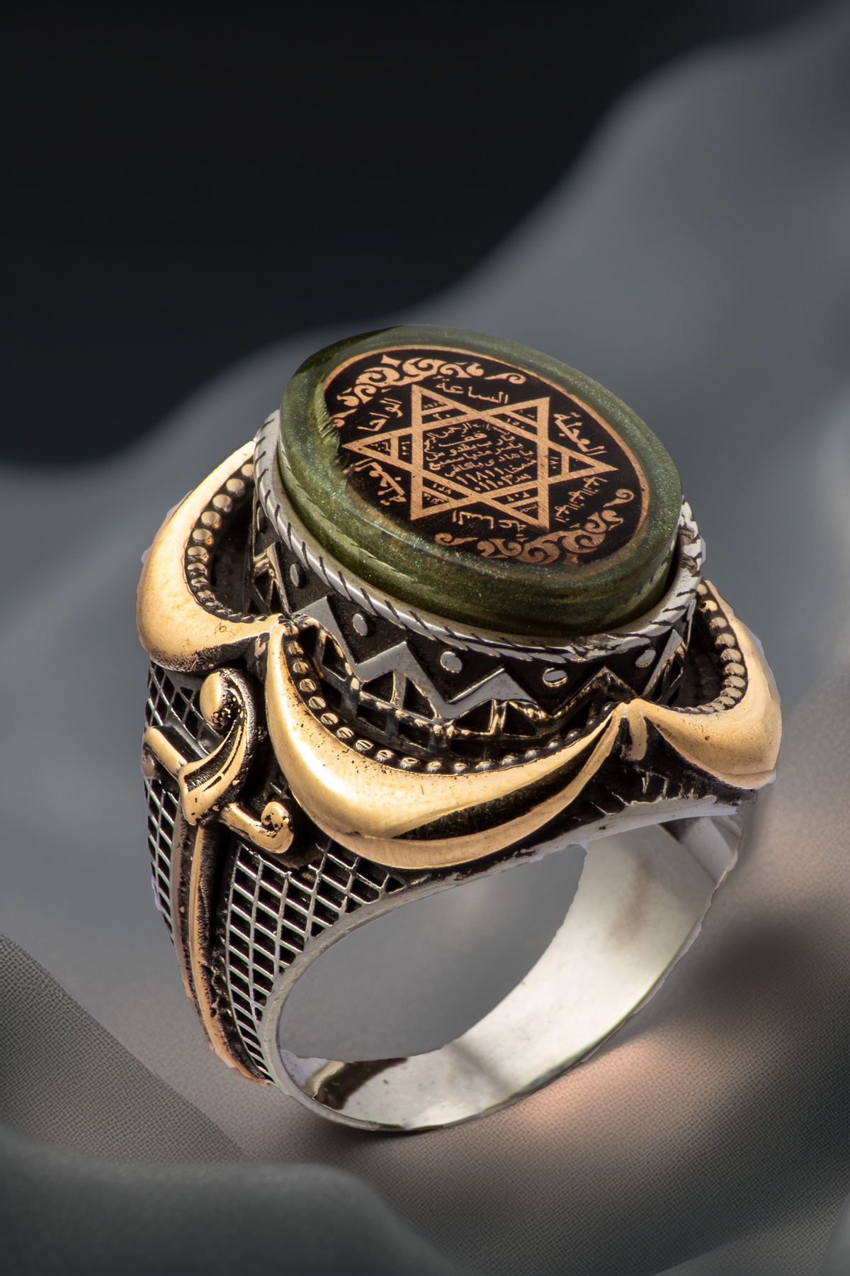 Erkek Yeşil Kehribar Taşlı Süleyman Mührü İşlemeli Hançer 925 Ayar Gümüş Yüzük Erkek Yeşil Kehribar Taşlı Süleyman Mührü İşlemeli Hançer 925 Ayar Gümüş Yüzük EGLY19 29