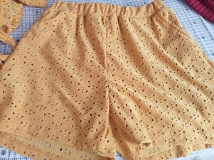 Kadın Hardal Kruvaze Yaka Belden Bağlamalı Güpür Bluz Ve İçi Astarlı Şort Takım ALC-X14092 Kadın Hardal Kruvaze Yaka Belden Bağlamalı Güpür Bluz Ve İçi Astarlı Şort Takım ALC-X14092 40