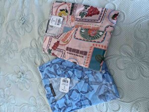 Kadın Pudra Desenli Önü Düğmeli Dokuma Gömlek Ve Şort Pijama Takım PJM-X13890 Kadın Pudra Desenli Önü Düğmeli Dokuma Gömlek Ve Şort Pijama Takım PJM-X13890 40