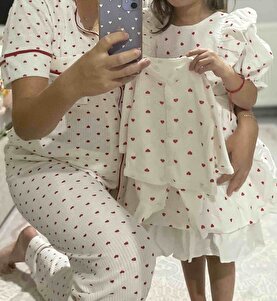 Mini Kalp Kırmızı Tek Cepli Biye Detaylı Pamuklu Gömlek Ve Pantolonlu Pijama Takımı PJM-X13898 Mini Kalp Kırmızı Tek Cepli Biye Detaylı Pamuklu Gömlek Ve Pantolonlu Pijama Takımı PJM-X13898 40