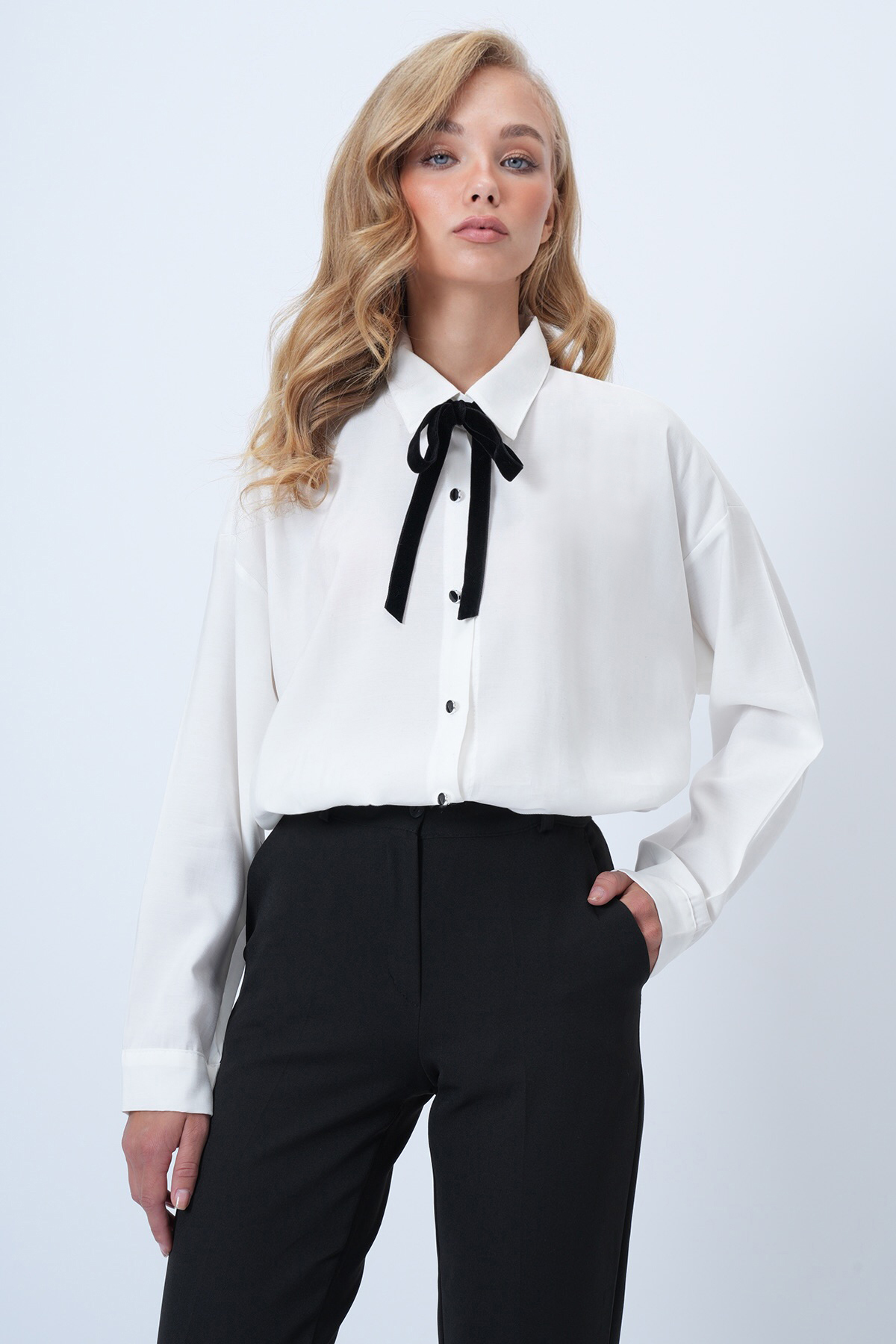 Kadın Beyaz Geniş Manşetli Beli Lastikli Crop Poplin Gömlek ALC-X13963 Kadın Beyaz Geniş Manşetli Beli Lastikli Crop Poplin Gömlek ALC-X13963 42